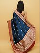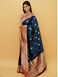 A rather chic touch to the traditional Khaddi Silk Banarasi Saree, this dark blue saree with a red border is for the connoisseur of royal Indian attires.