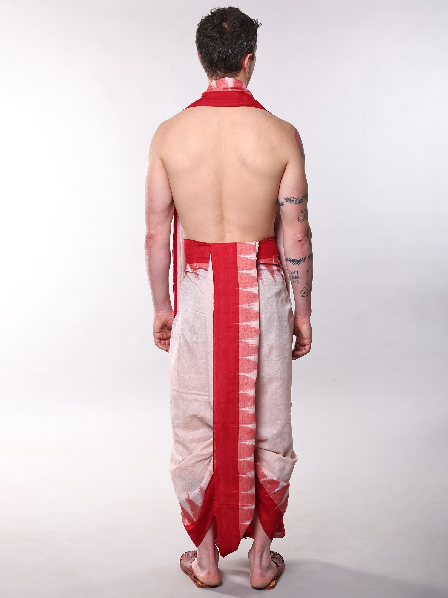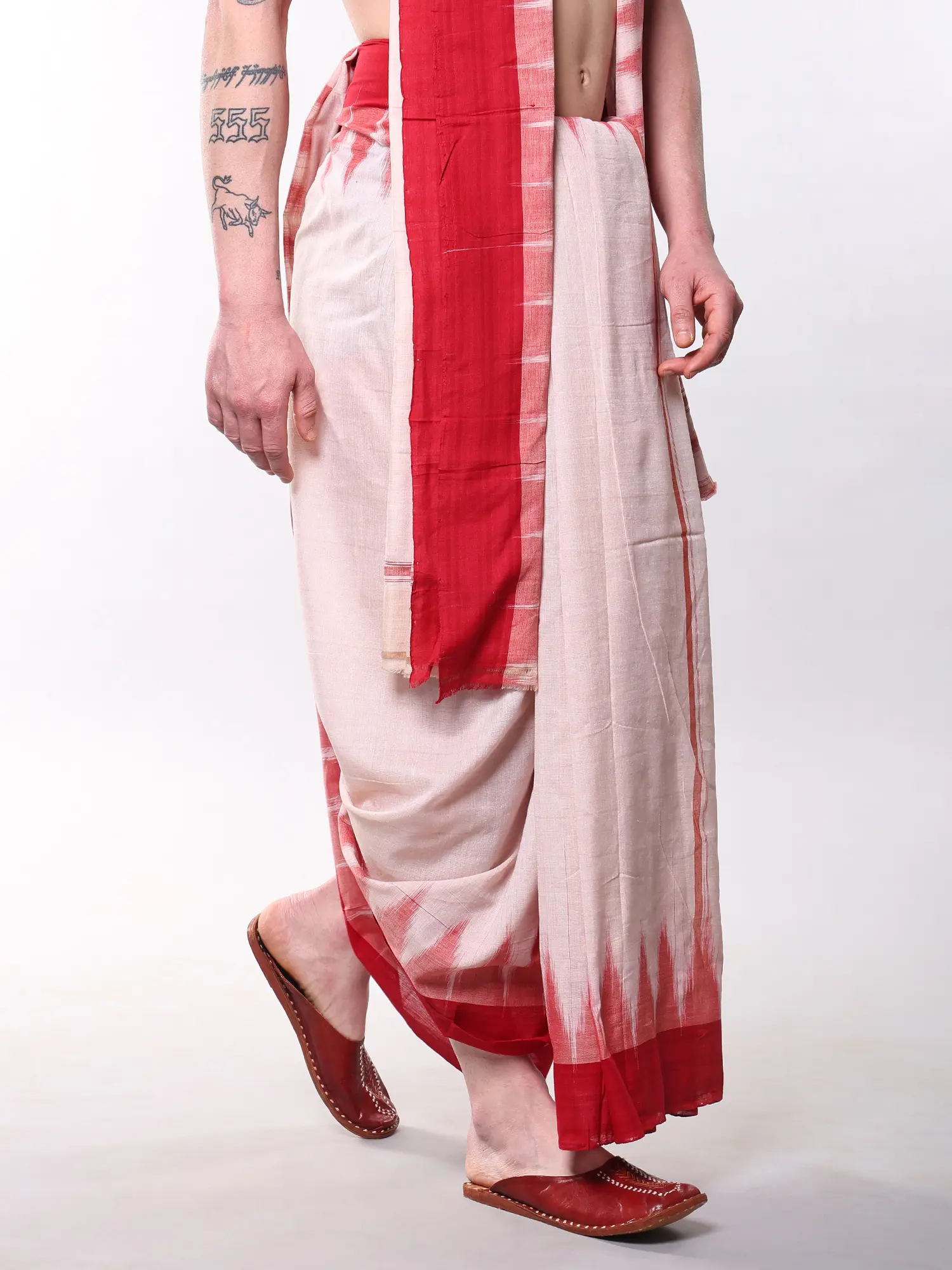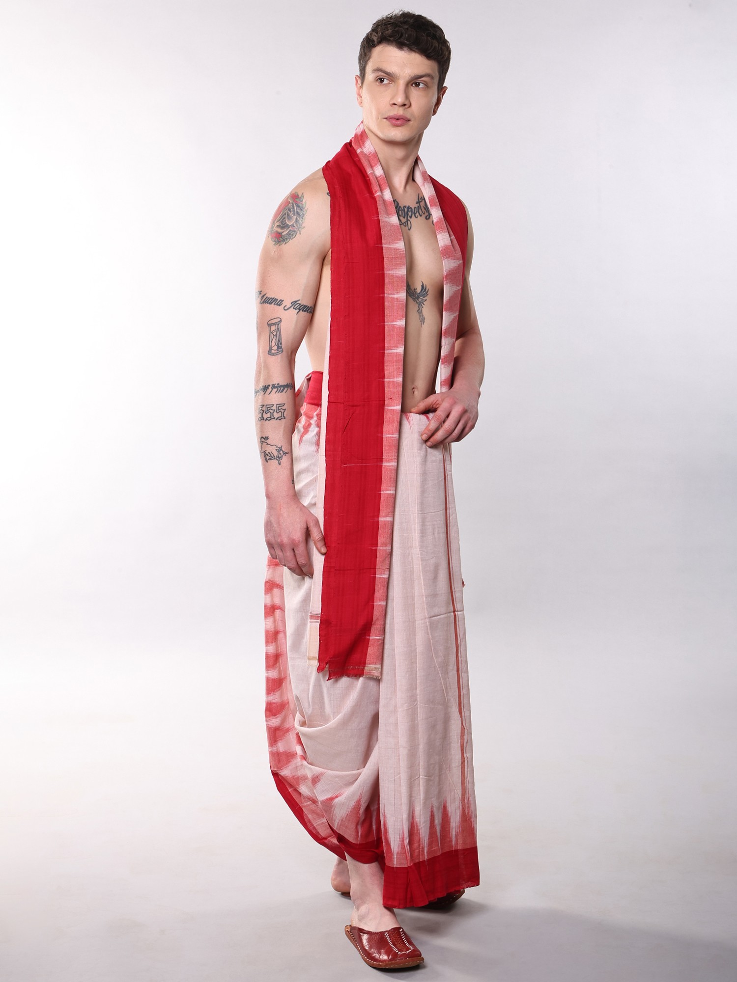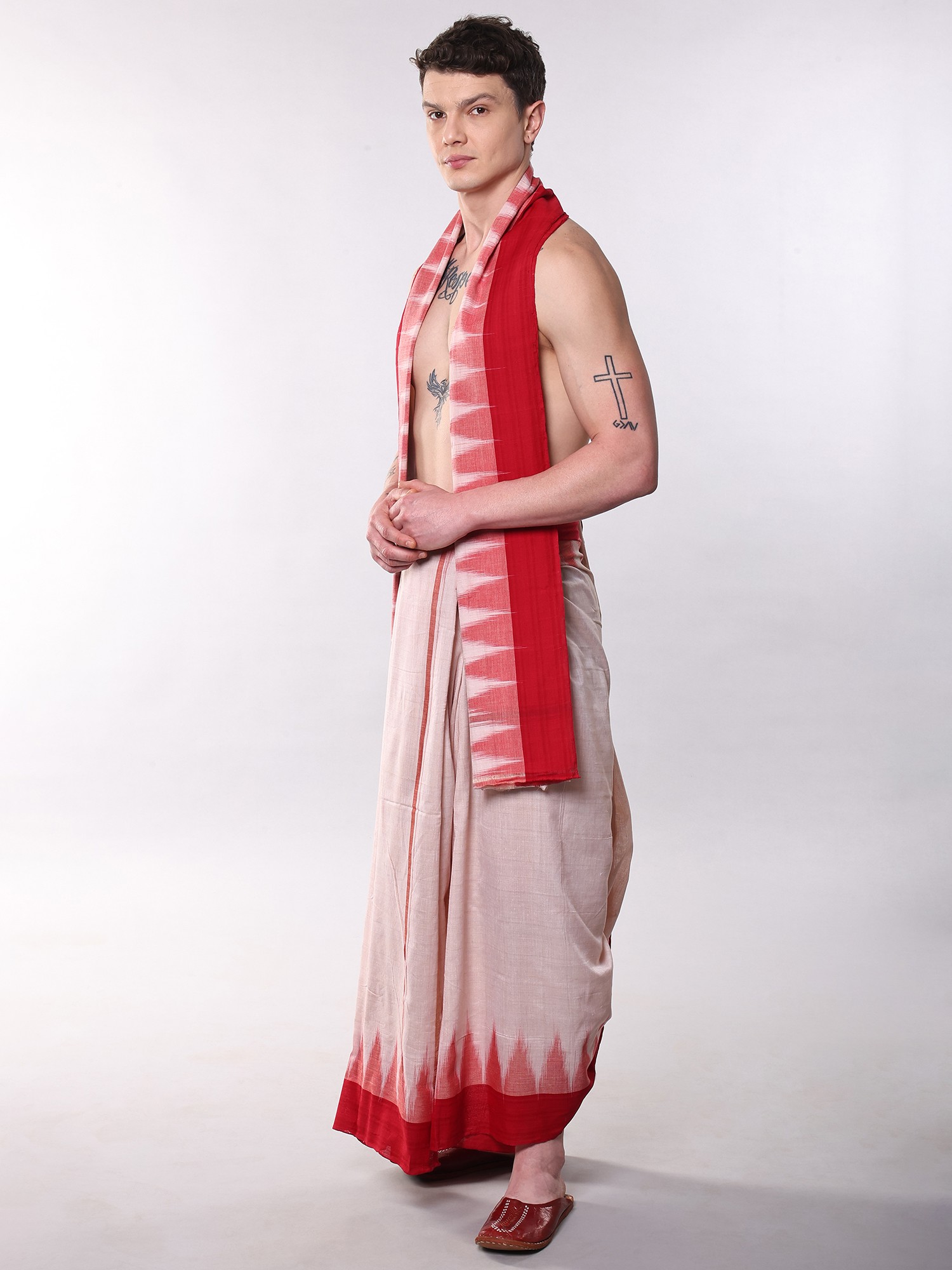 Sambalpuri Dhoti and Angavastram Set with Ikat Temple Border