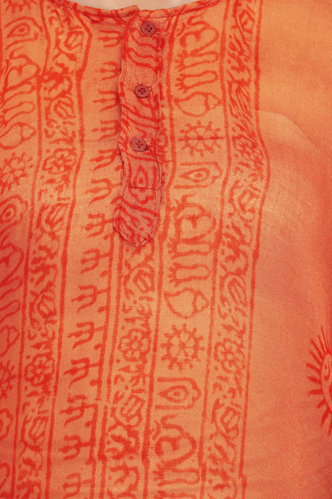 This “Sanatan Dharma Kurti” is a captivating masterpiece which has been adorned with sacred motifs prints. Each motif tells a story, a narrative steeped in centuries of tradition and spiritual richness. Fashioned from pure cotton, this kurti merges comfort with culture seamlessly.