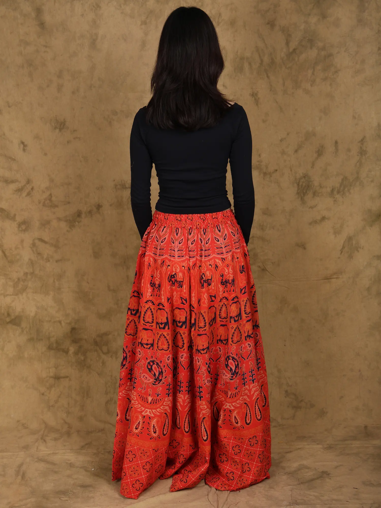 Sanganeri Long Skirt with All Over Floral and Elephant Printed Motif