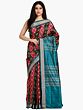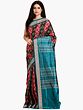 Pirate-Black Pure Silk Ikat Handloom Sambhalpuri Saree with Animals-Birds Motifs and Woven Fish Border