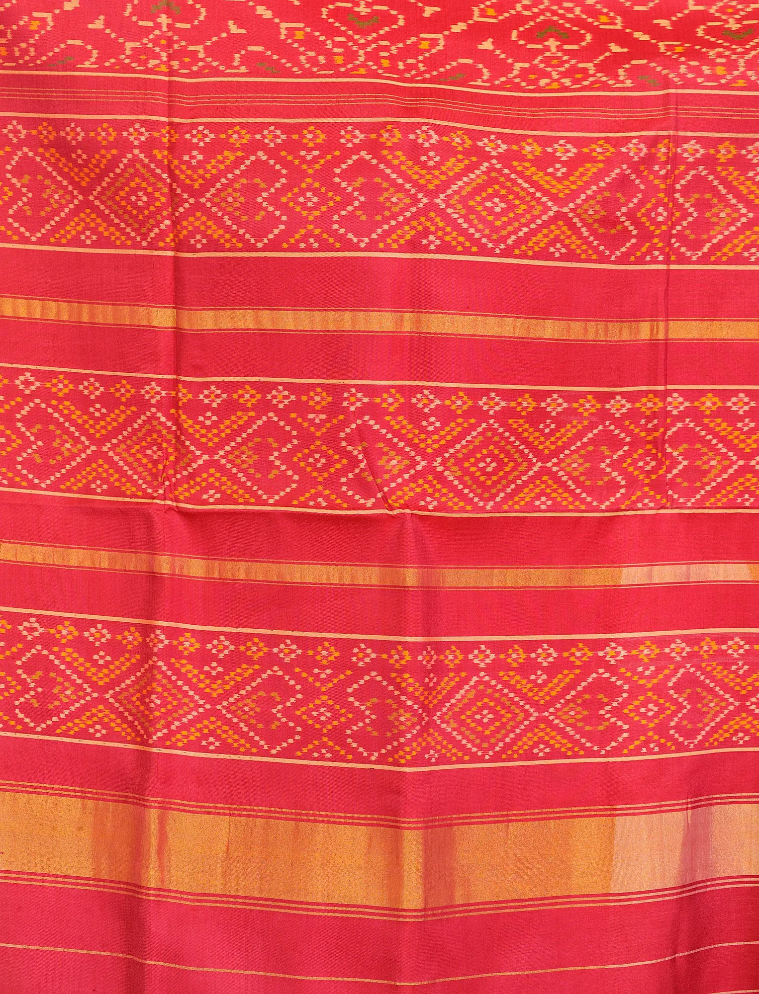 Pure Silk Patan Patola Handloom Saree from Gujarat with Ikat Weave and Contrast Red
