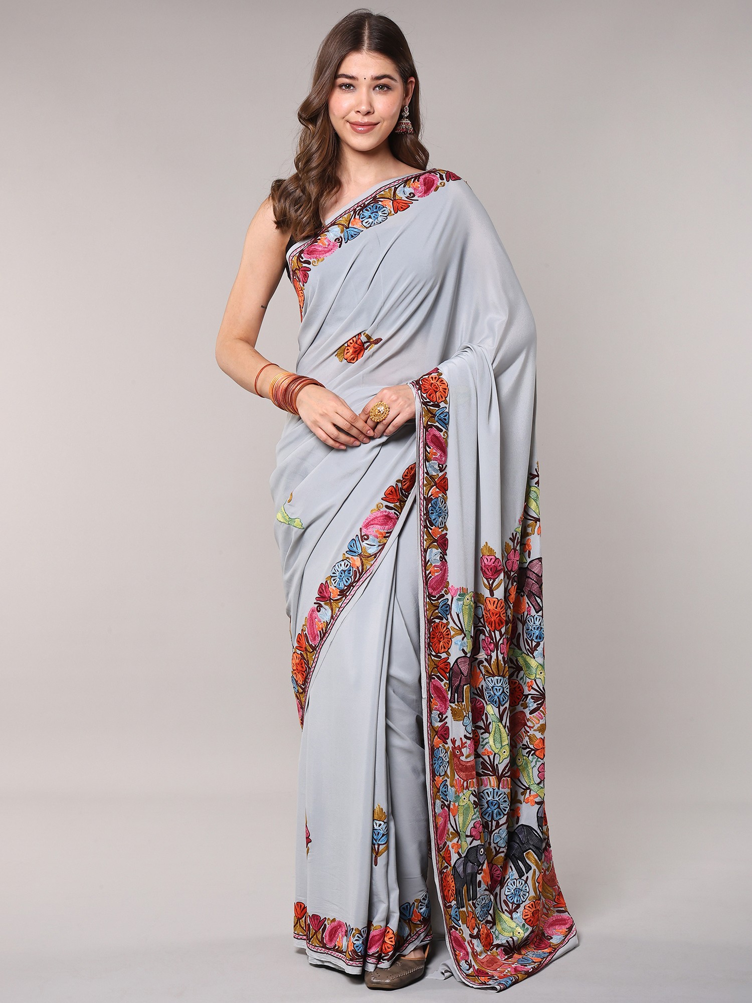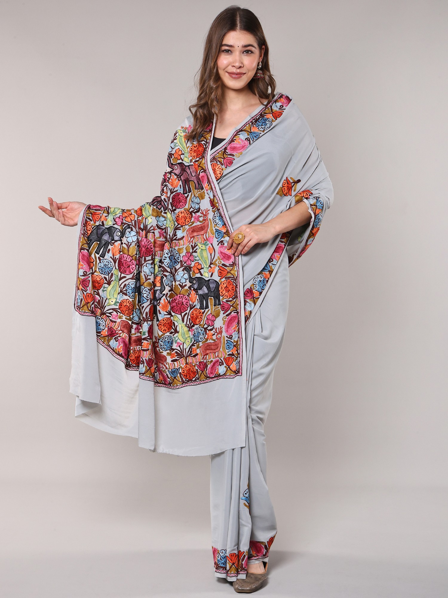 Georgette Kashmiri Sari with Beautiful All-Over Kashida Embroidery