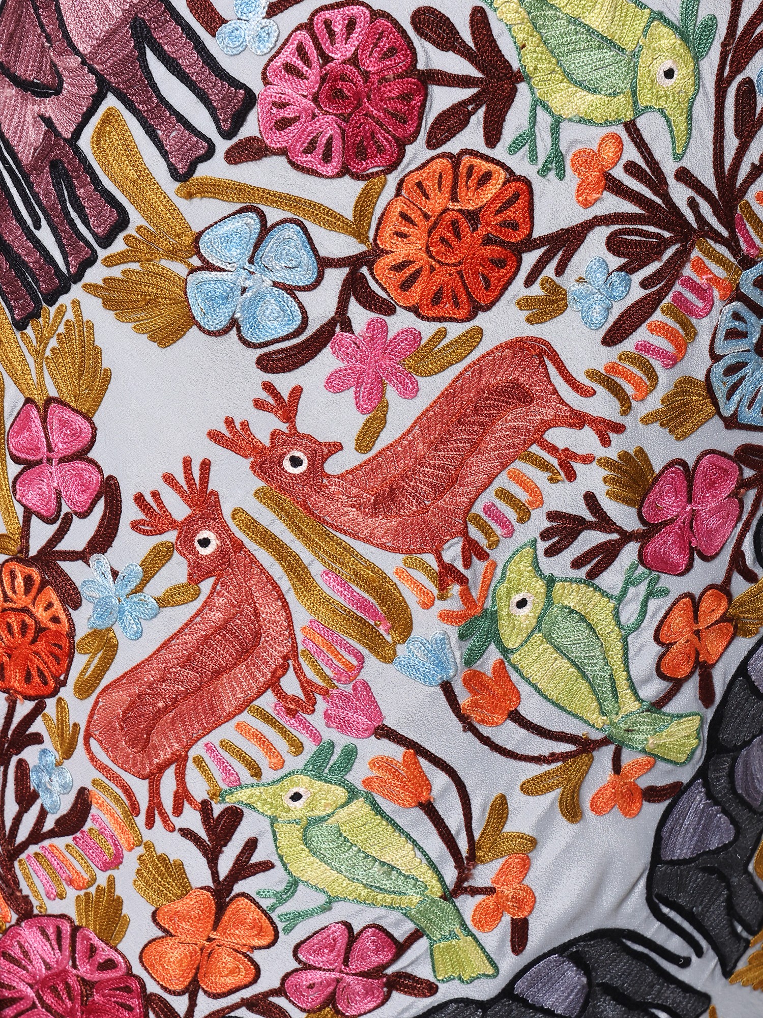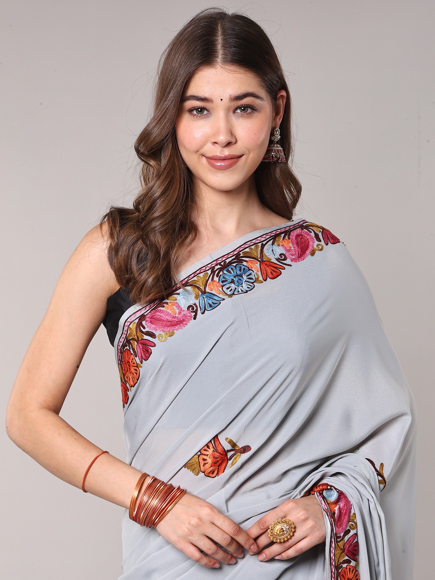 Georgette Kashmiri Saree with Aari Embroidered Multicolor Flowers