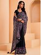 Jet-Black Kashmiri Stole with Hand-Embroidered Maple Leaves