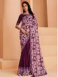 Vintage Parachute-Purple Net Saree with Floral Embroidered Beads and Crystals
