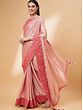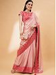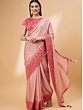 Satin Georgette Pale Chestnut Party Wear Saree And Flower Design In Border With Blouse