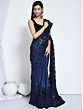 Satin Silk Saree With Unstiched Blouse Sequence Embroidered For Lady