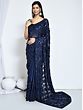 Powder-Blue Hand Embroidery And Sequins Work Border Solid Attractive Satin Silk Saree