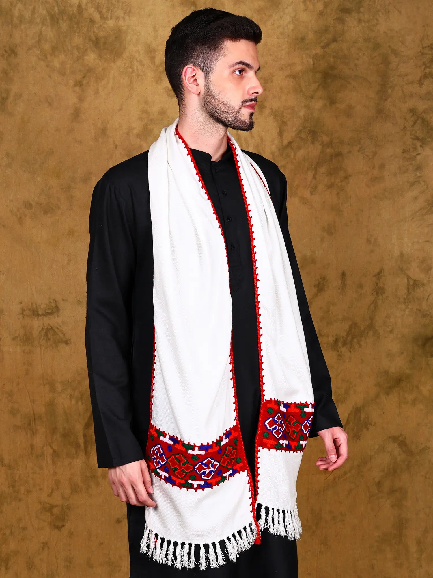 Designed with a unisex appeal, this scarf effortlessly complements a wide range of wardrobes. Drape it elegantly over traditional attire, such as a kurta or sherwani, to add a touch of regal charm and cultural depth. For a more contemporary look, it can be paired with a simple t-shirt and jeans, or layered over a jacket or sweater for an added layer of warmth and a distinctive style statement. The generous length allows for various styling options, from a classic loop to a more casual drape over the shoulders.