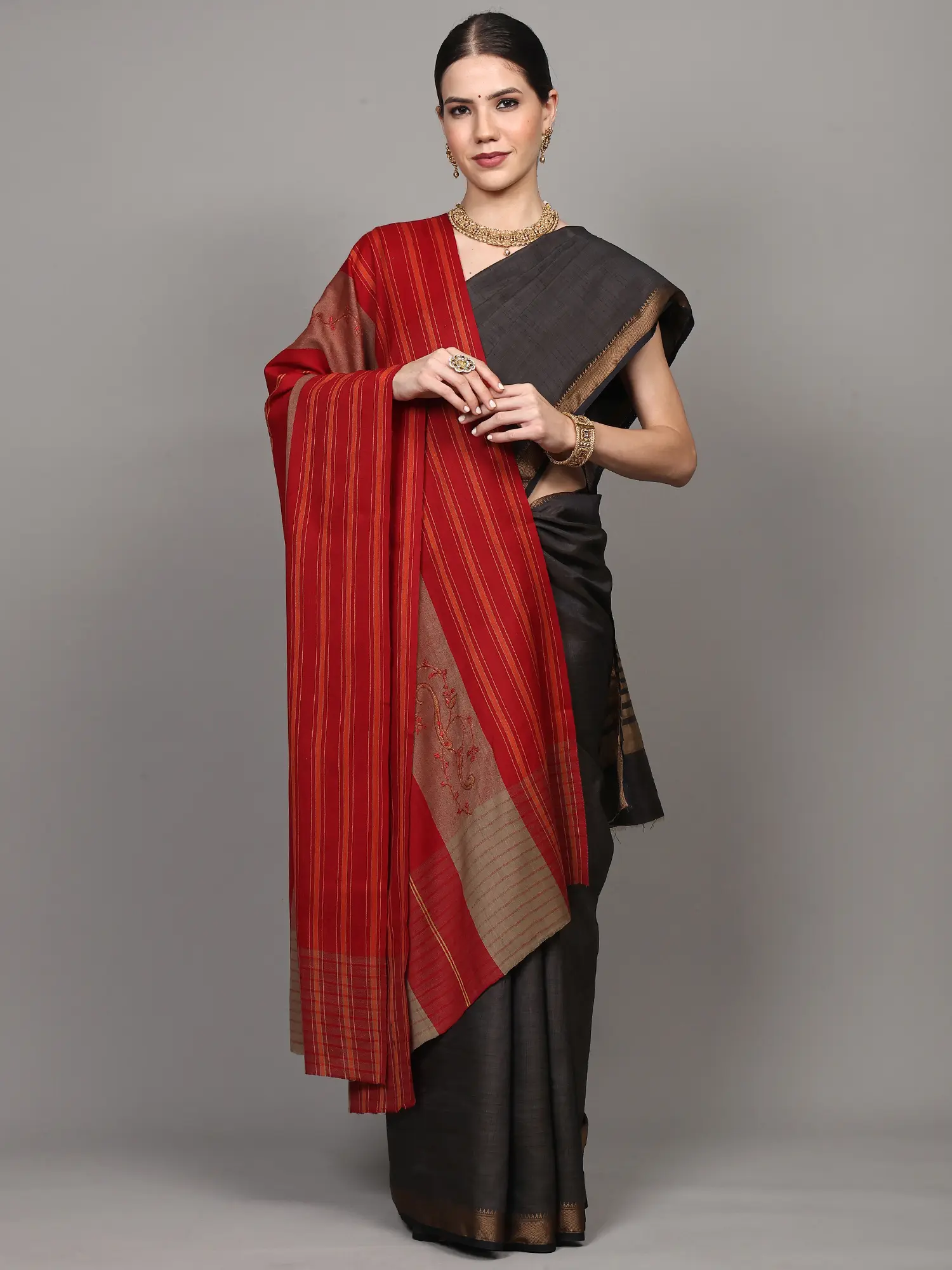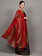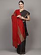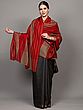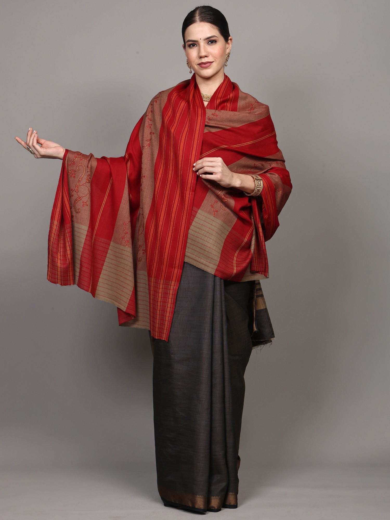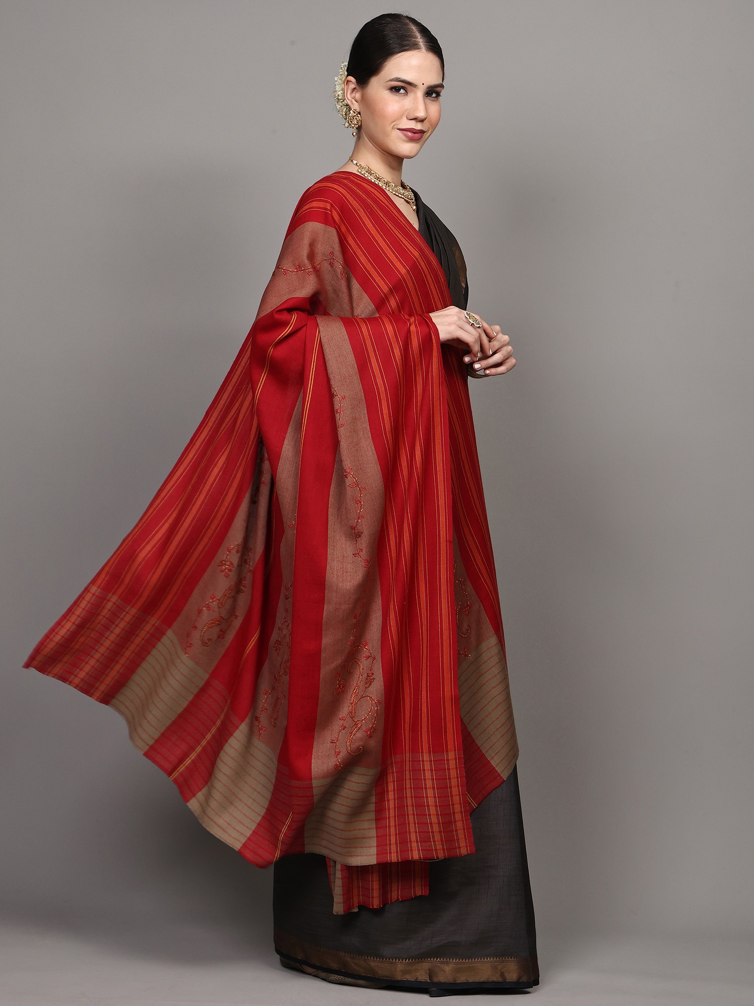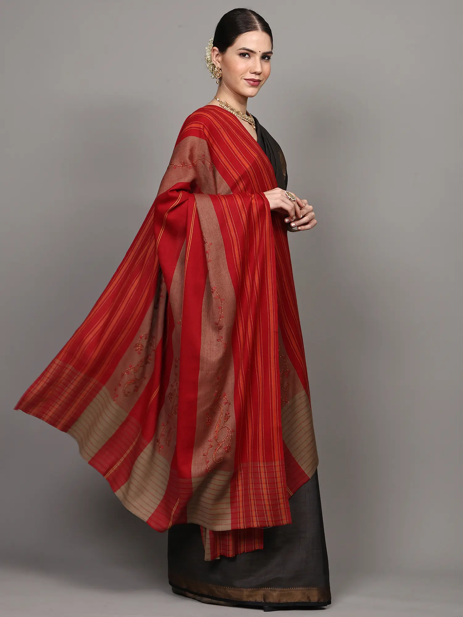 Scarlet-Sage Shawl with Woven Multi Stripes and Sozni Embroidery