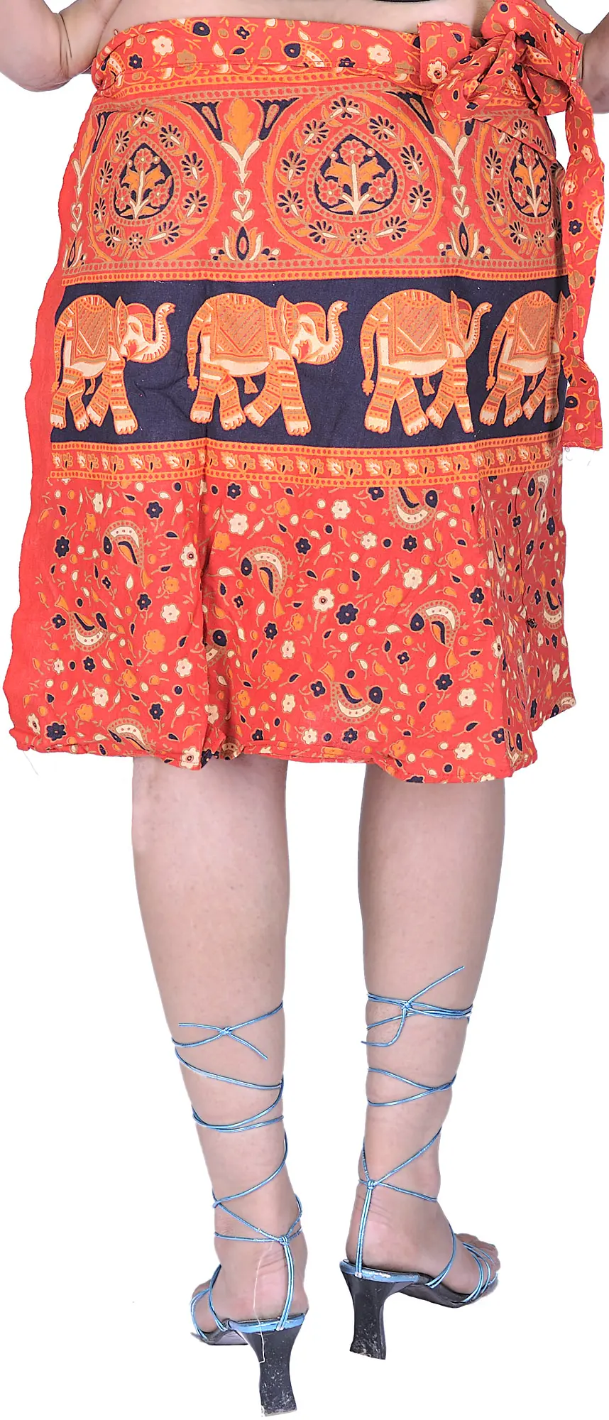 Wrap-Around Long Skirt from Pilkhuwa with Printed Paisleys and Elephants