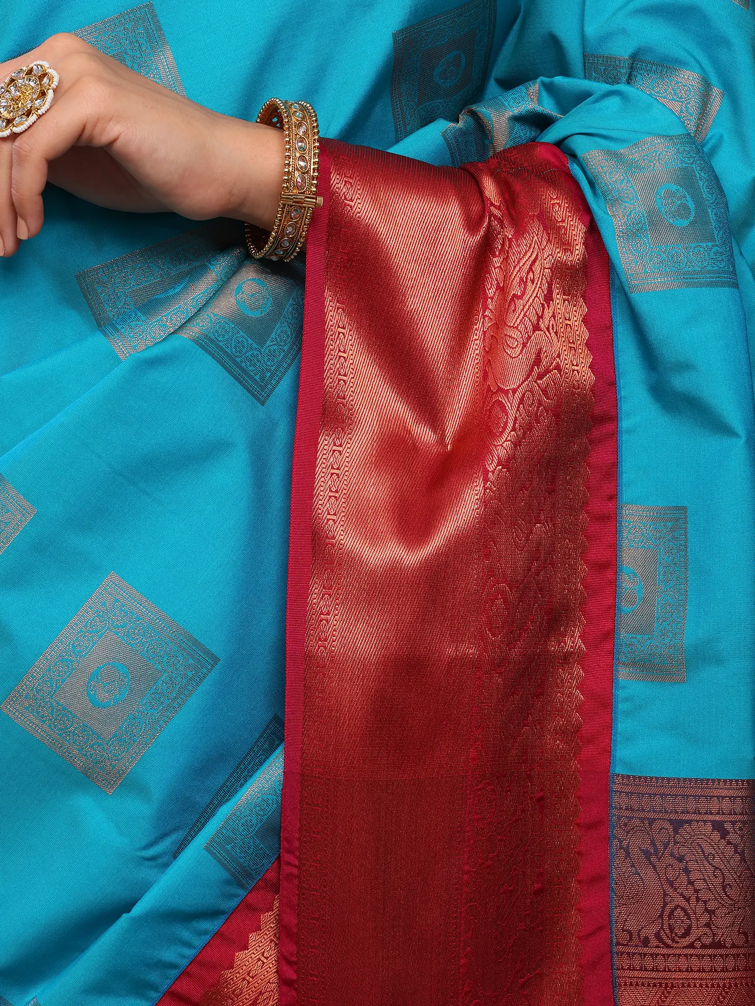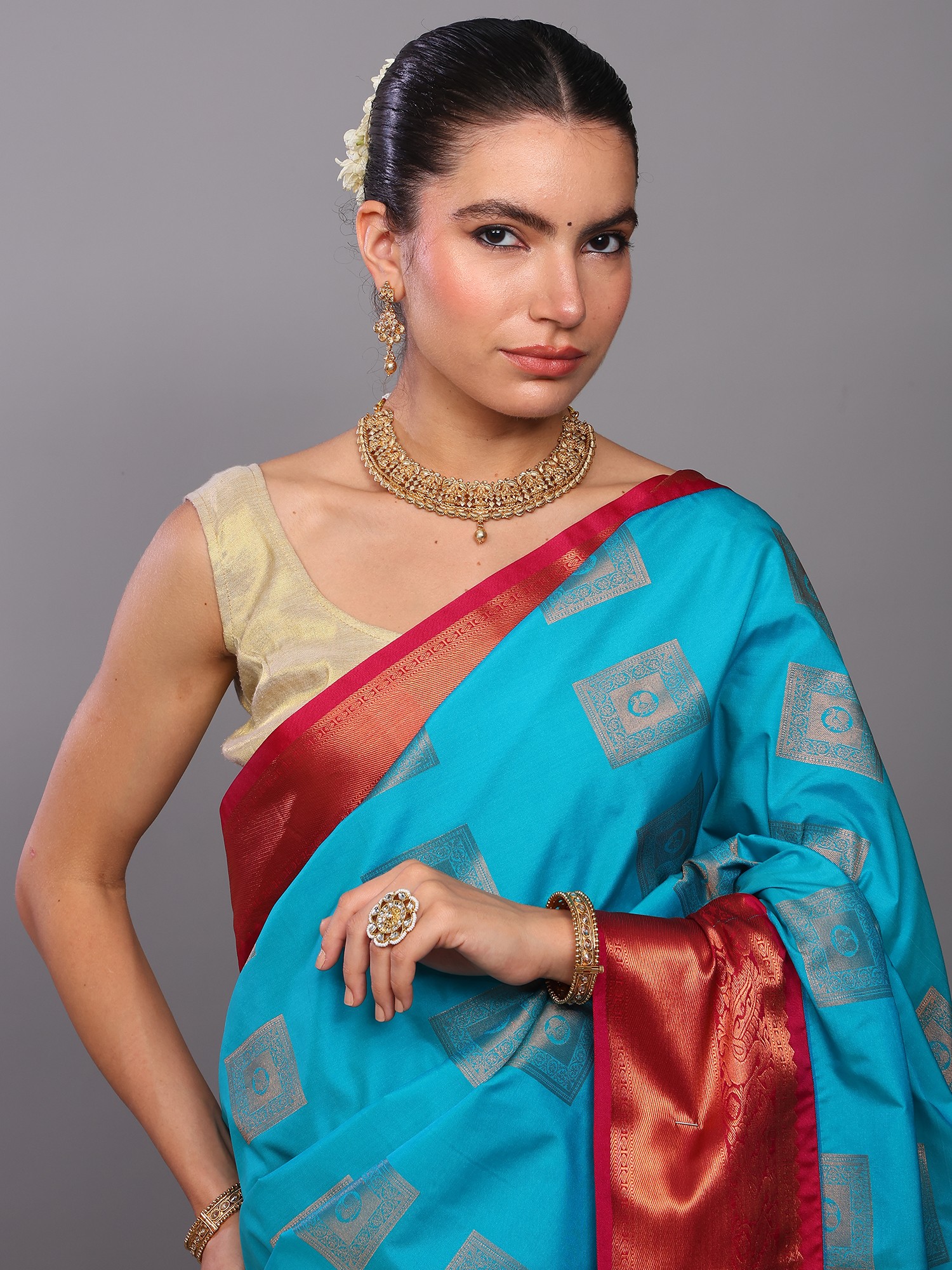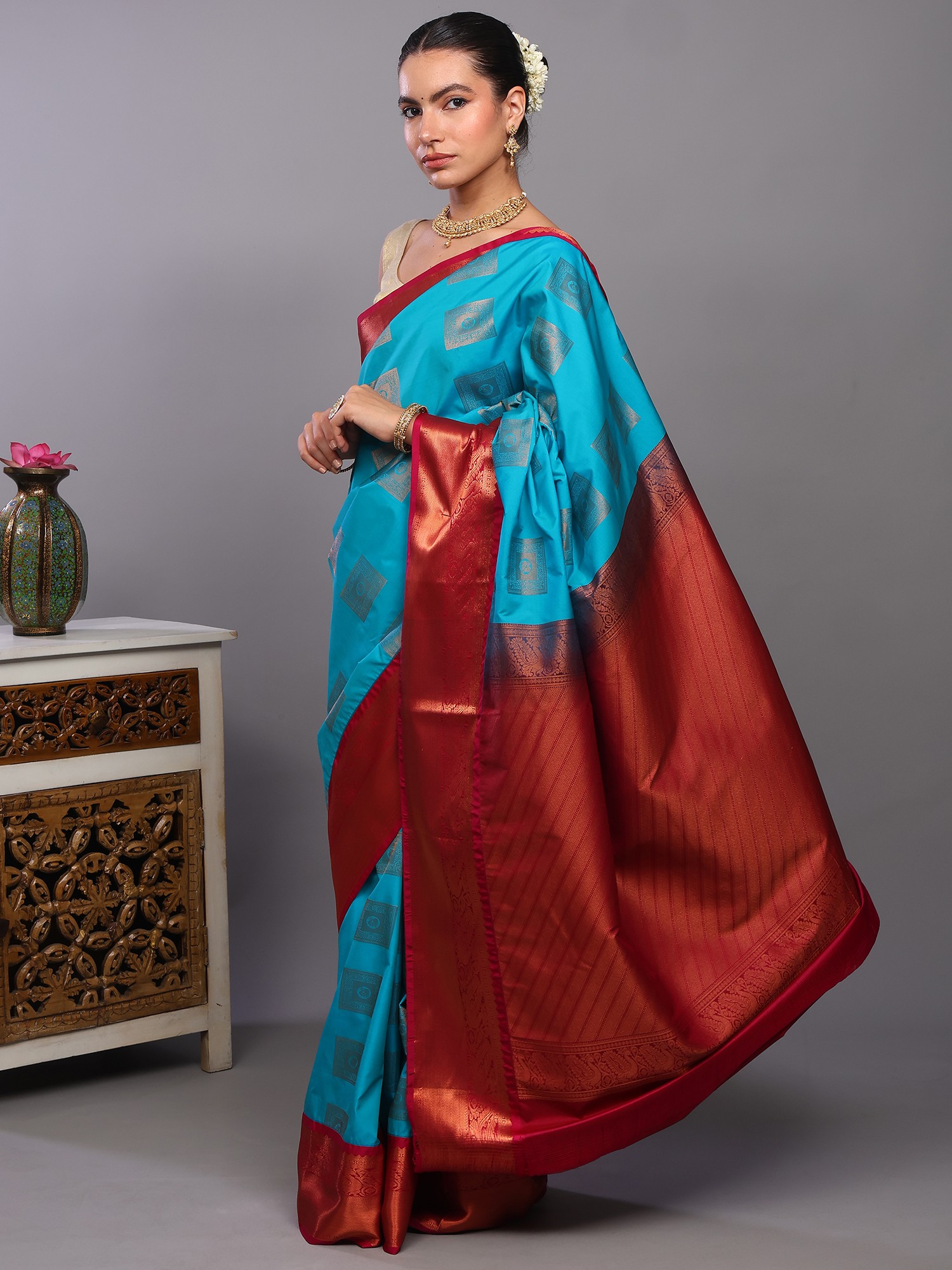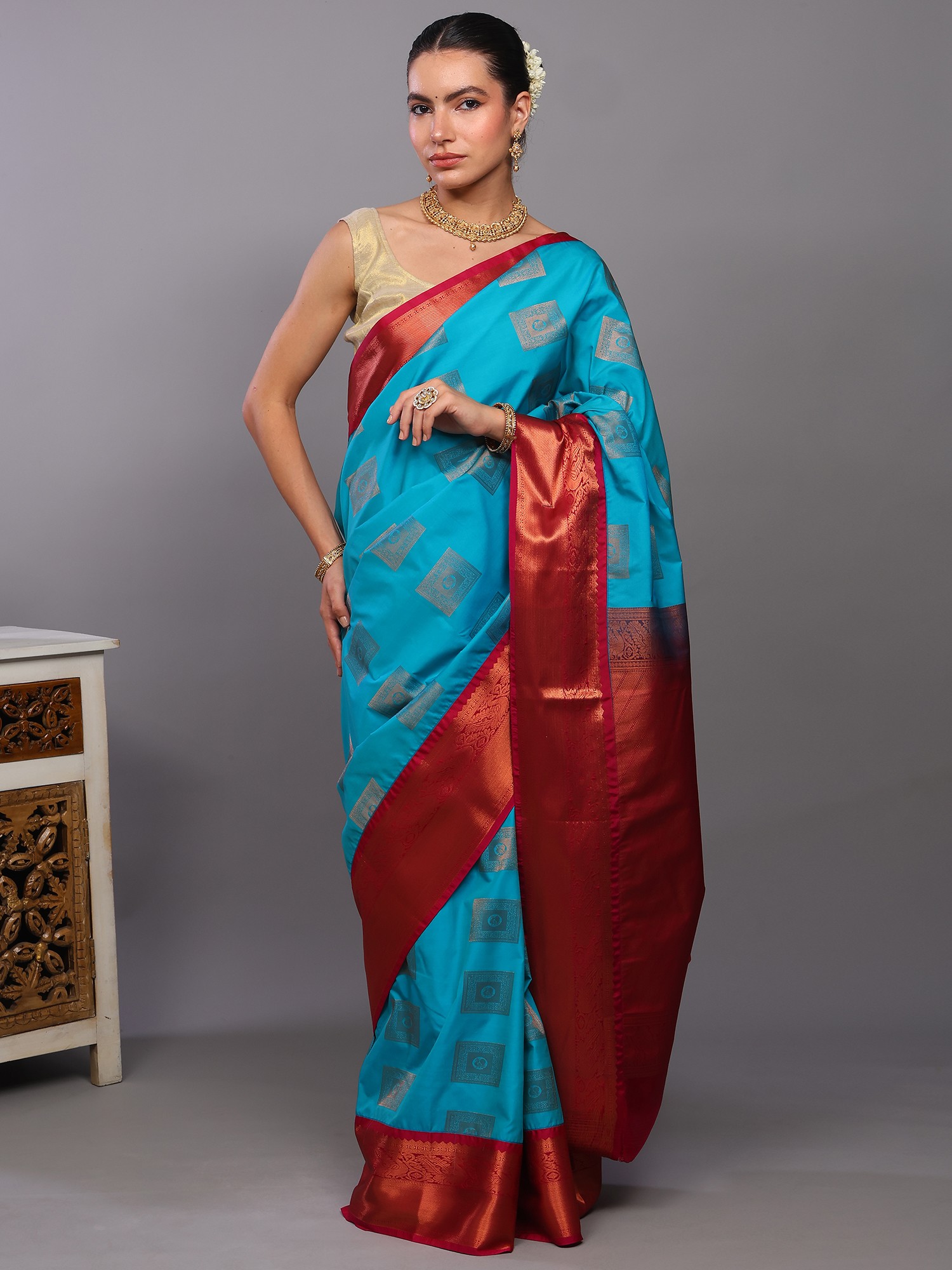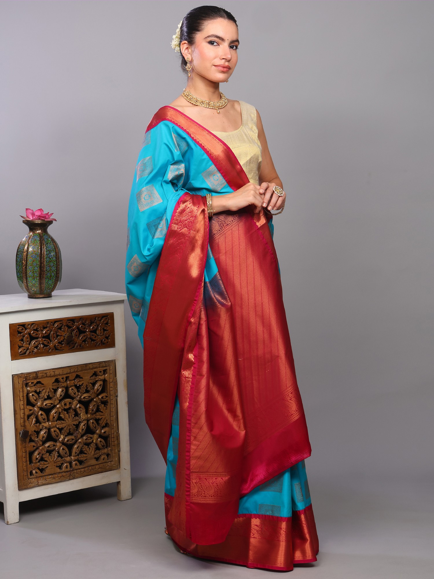 A Vision in Scuba Blue: The Art Silk Kanjivaram Saree