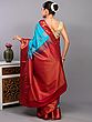The saree is framed by a breathtaking contrast border and anchal in a deep, opulent red. This bold juxtaposition of colors creates a striking visual impact, elevating the overall aesthetic of the garment. The border itself is richly woven, featuring traditional Kanjivaram patterns that speak of heritage and timeless artistry. The anchal, the decorative end piece of the saree, is equally resplendent, ensuring that every angle of this drape is a testament to luxury. The lustrous sheen of the art silk fabric further enhances the richness of the colors and the intricate weave, making this saree a truly statement-making piece.