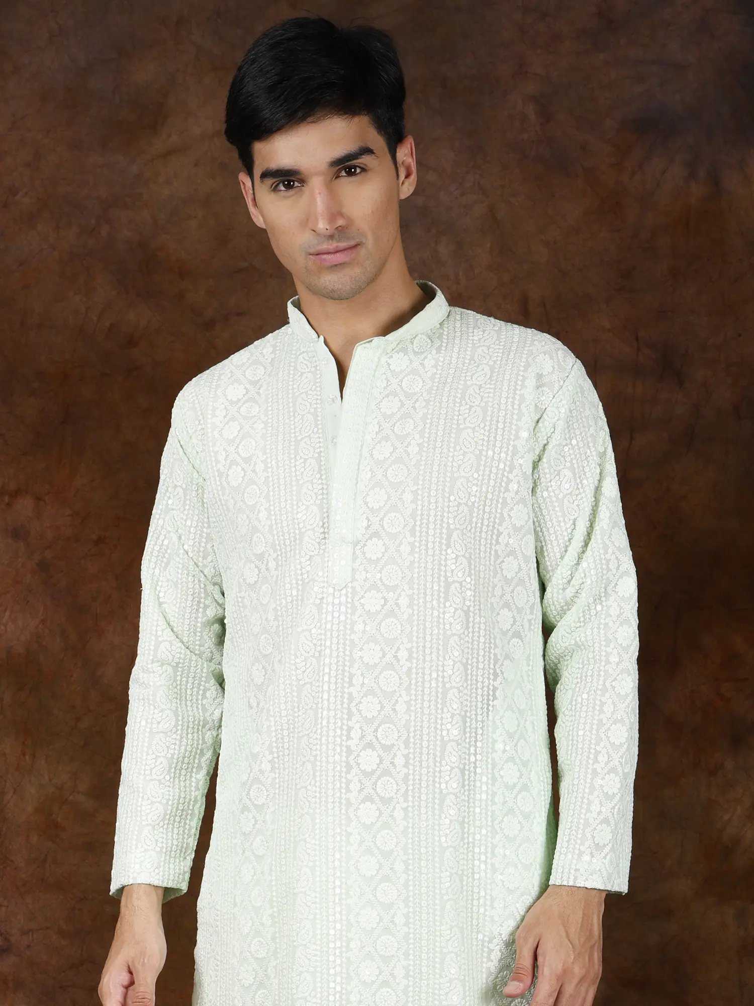 Lakhnavi Chikan Kurta Pajama Set with Metallic-Thread Embroidery