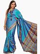 Maritime-Blue Modal Silk Printed Saree with Floral Vine Border from Madhya Pradesh