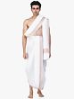 Prepared from pure cotton, this “Dhoti and Angavastram Set”, is more than just attire; rather, it is a symbol of cultural richness and heritage. Adorned with a vibrant multicolored thread woven border, each thread tells a story of craftsmanship and artistry.