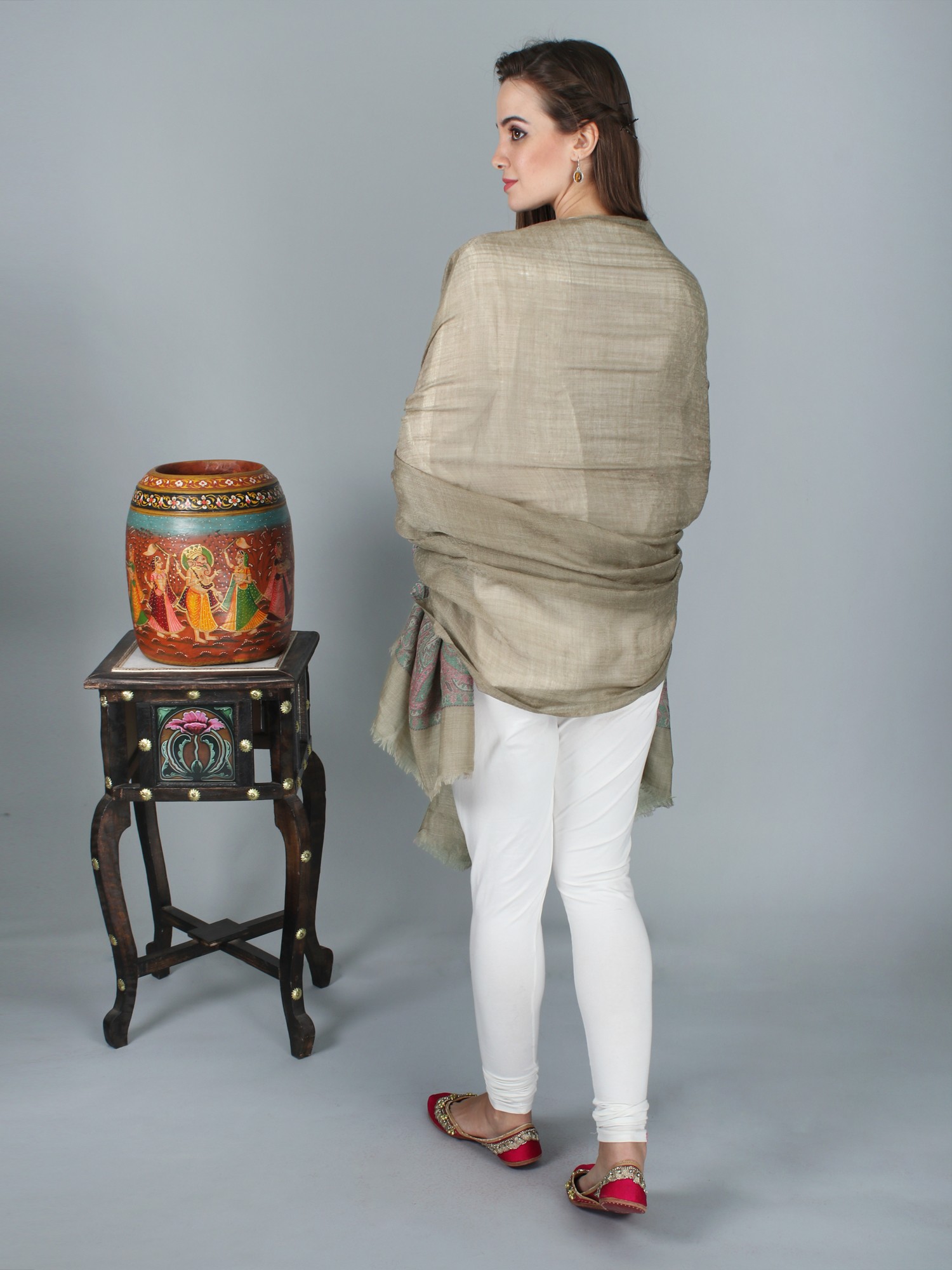 Our Semi Cashmere Palla-Jamawar Stole is a testament to artistry. This stole, lovingly handcrafted in Amritsar, features an intricate woven border that tells the story of skilled artisans who pour their hearts into every thread. The semi-cashmere fabric is the legacy of the region, ensuring both luxury and durability. The Palla-Jamawar design, rooted in Persian history, has gracefully evolved to keep pace with contemporary fashion trends, making it a versatile addition to your wardrobe. The colors pay vibrant homage to the region's culture, creating a wearable piece of art.