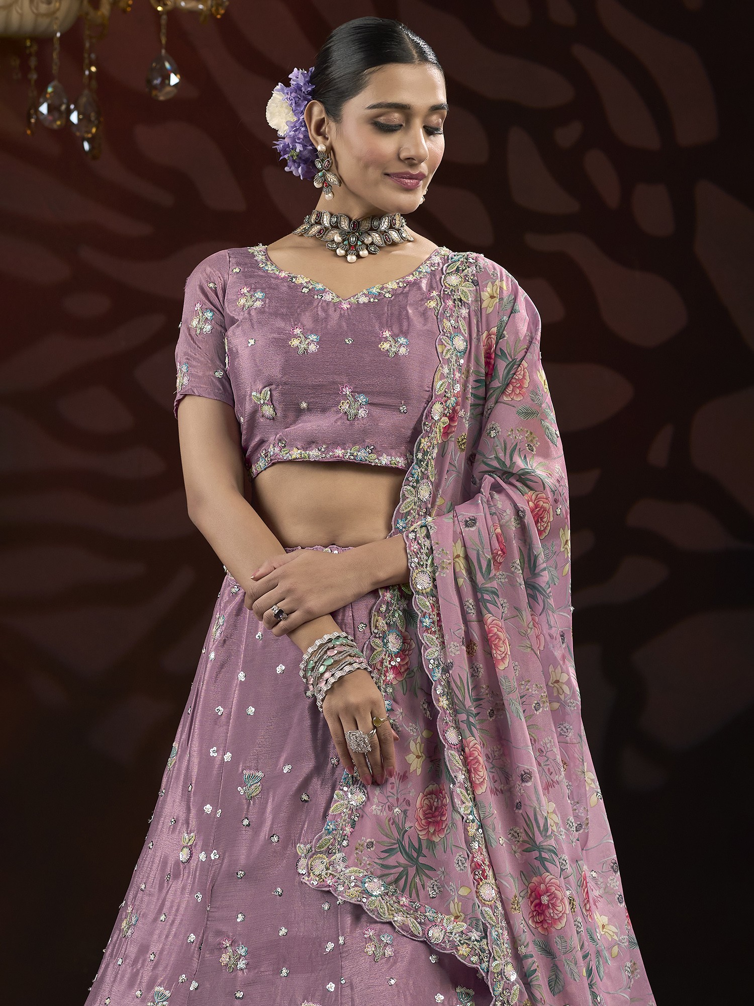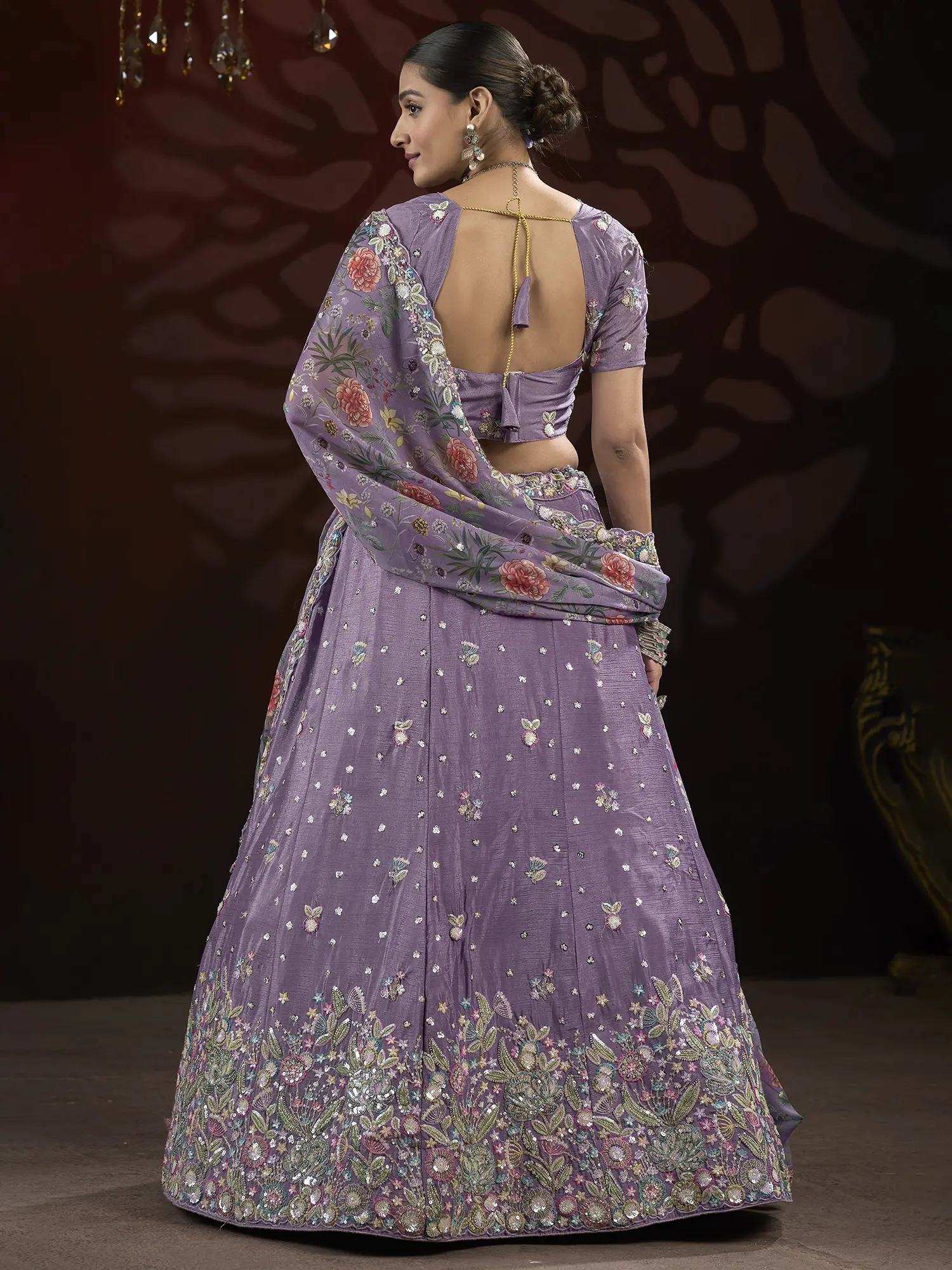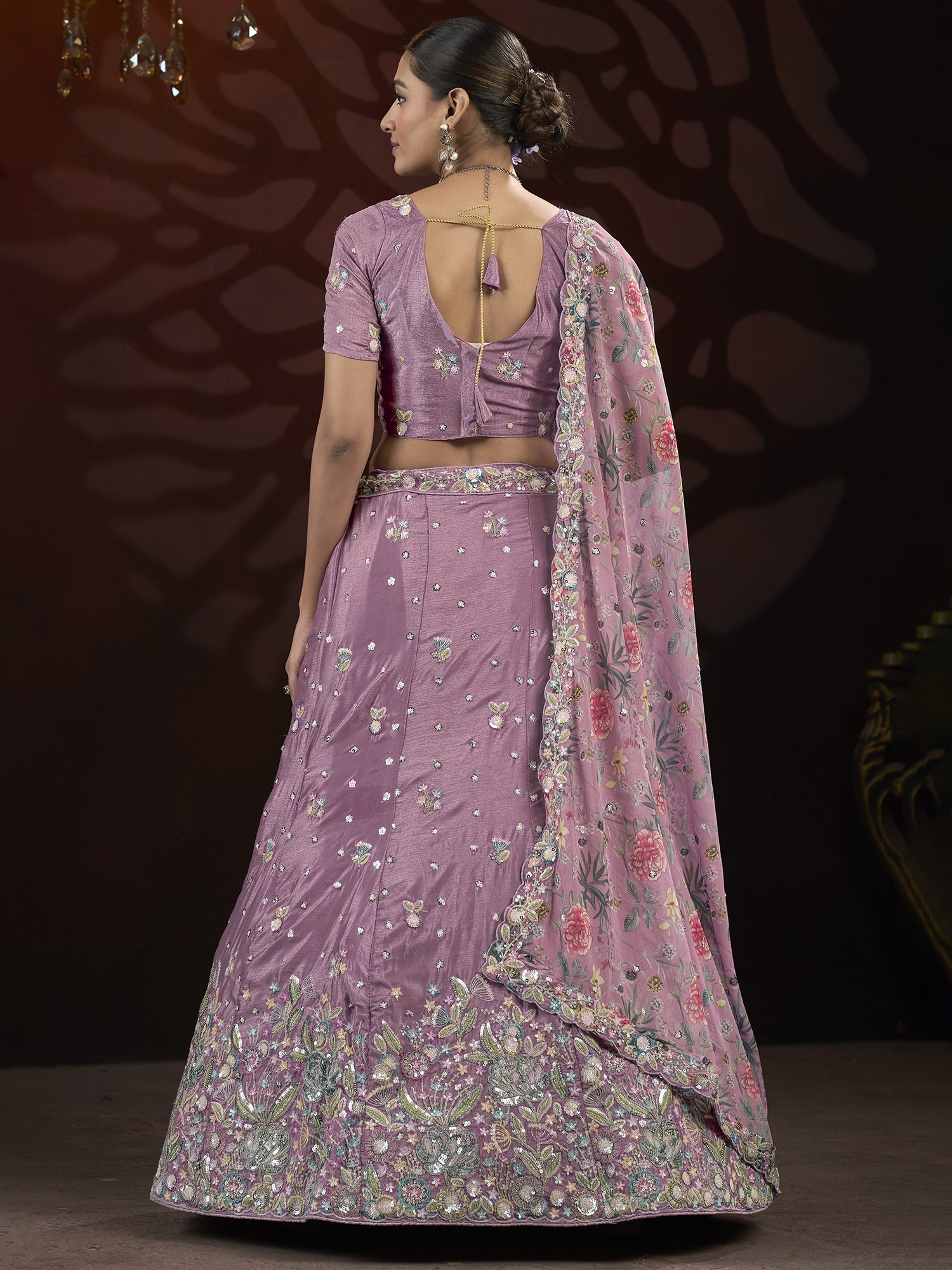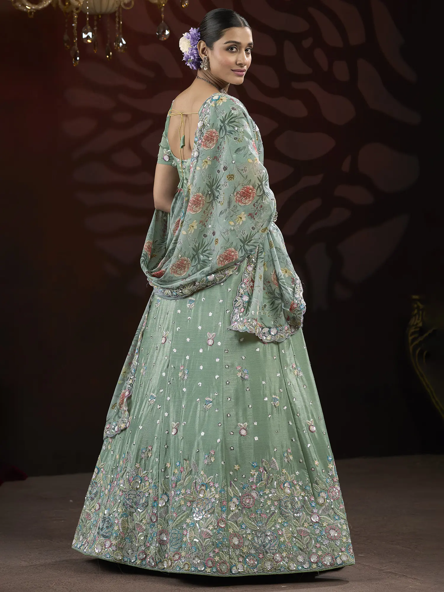 Net Chakra-Vine Motif Bridal Lehenga Choli With All-Over Zari, Sequins, Diamond, Multi Thread Embroidery With Soft Net Butti Pattern Dupatta