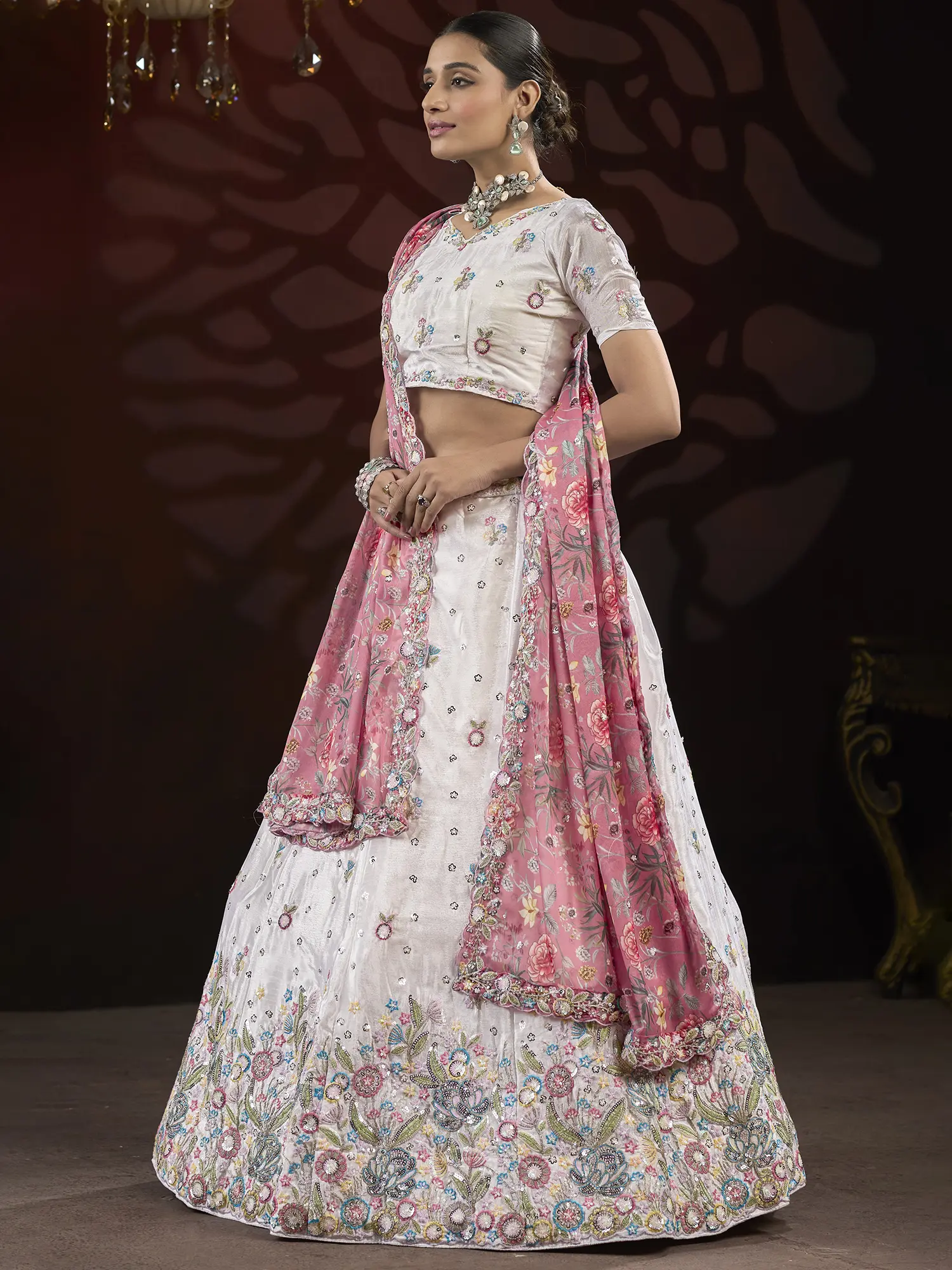 Light-Pink Soft Net Thread Embroidered Lehenga Choli with Sheer Dupatta