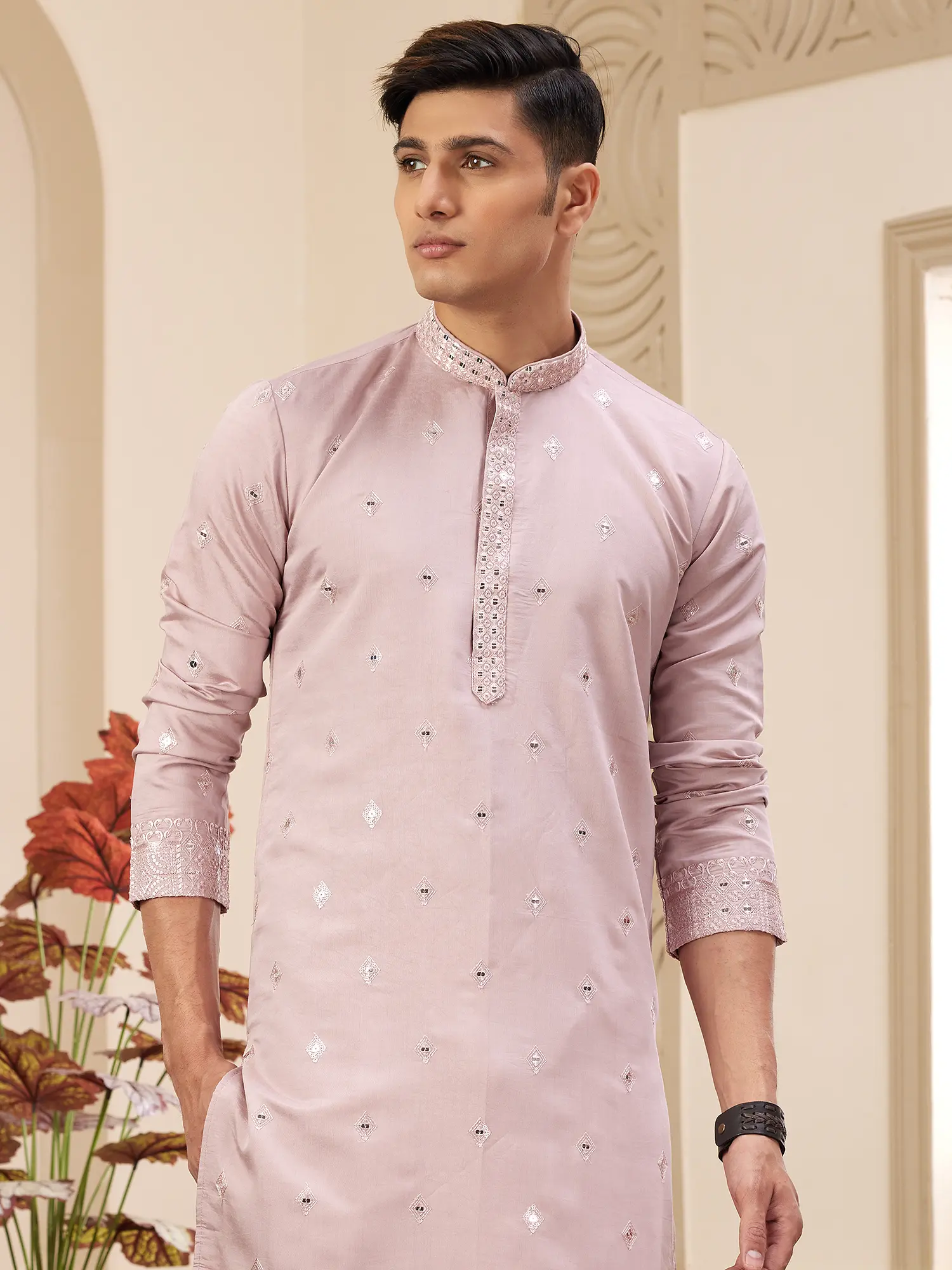 Plain Pure Cotton Pathani Kurta Pajama Set with Front Pocket