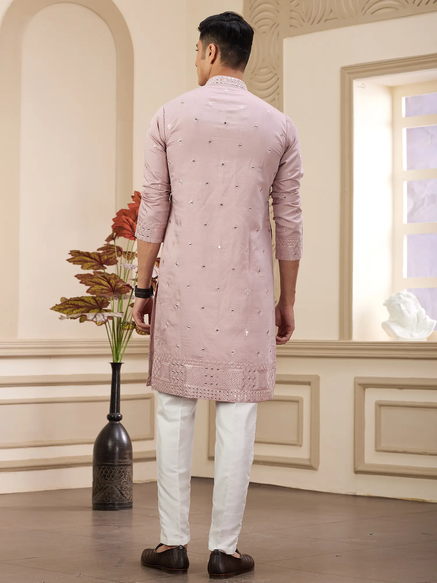Seashell-Pink Polycotton Plain Pathani Kurta Pajama Set