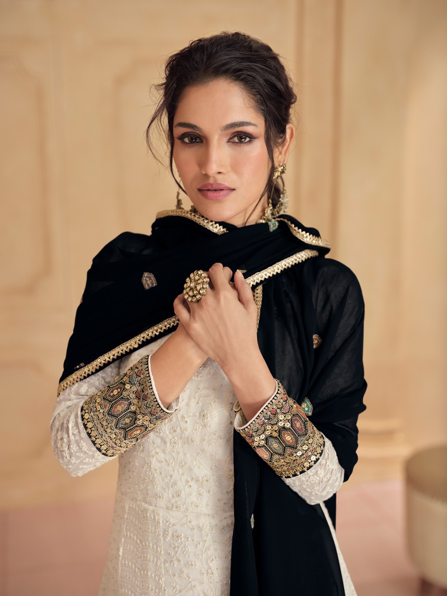 Black and Ivory Designer Gown with Aari-Embroidery and Sequins