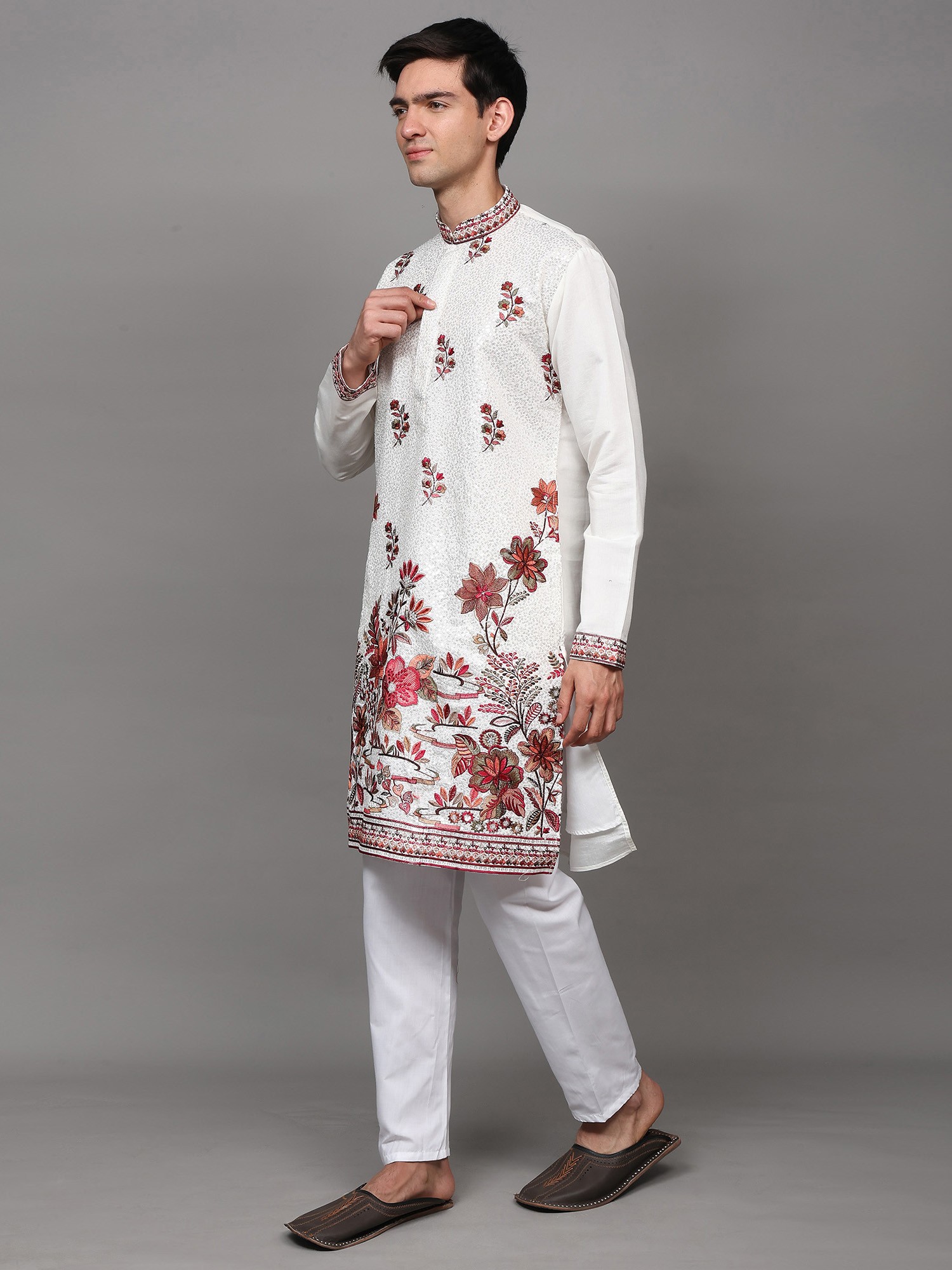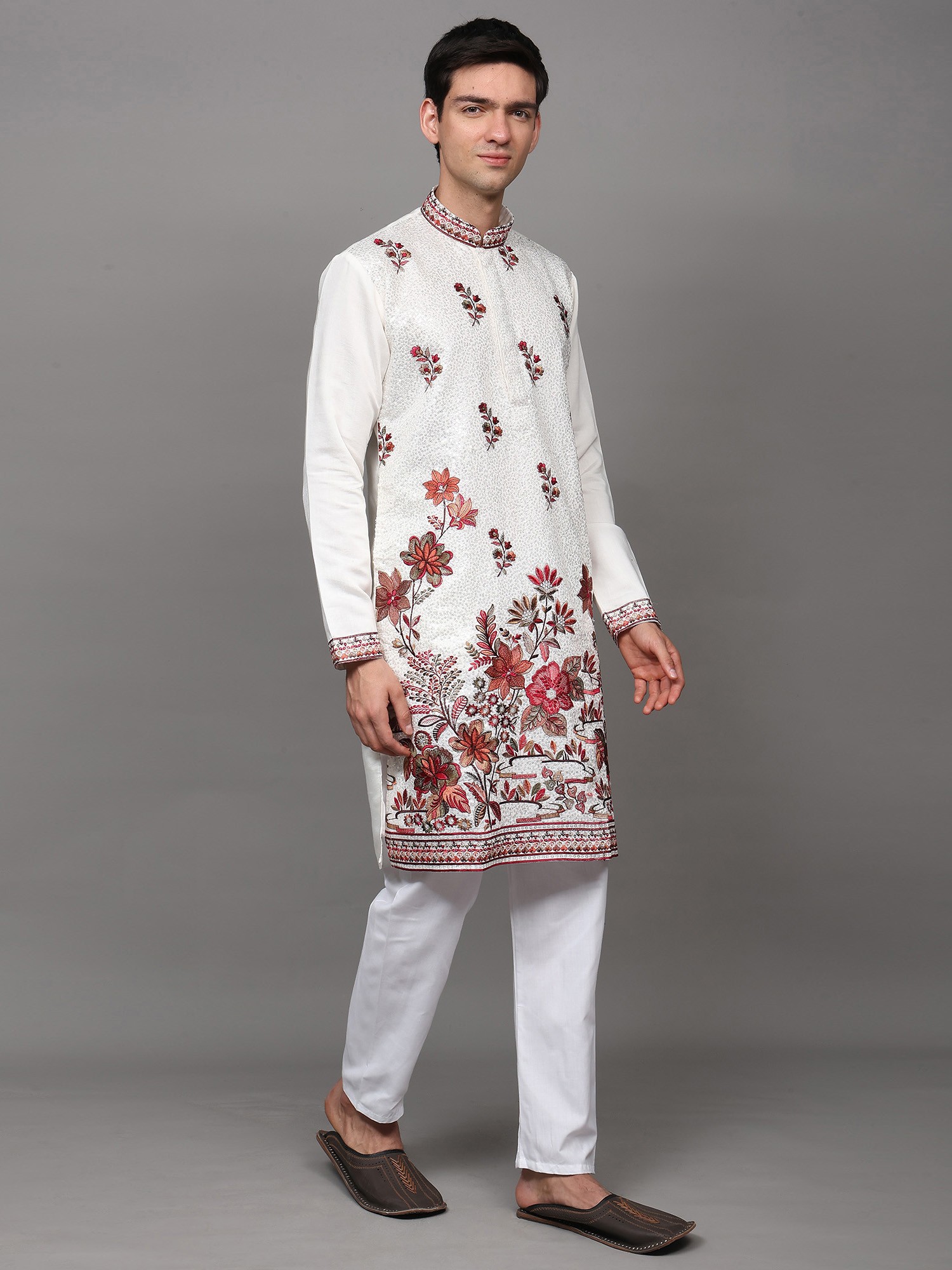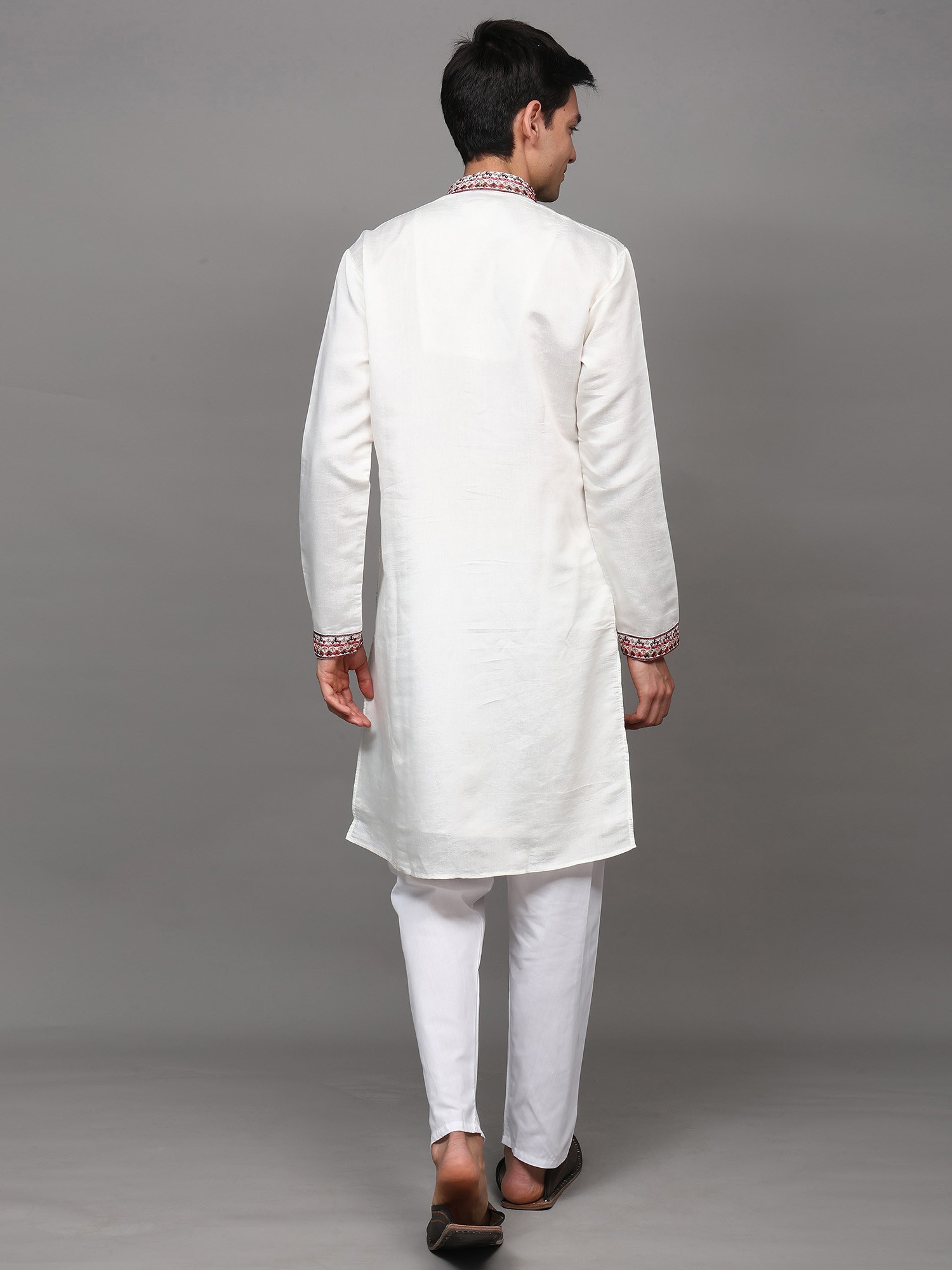 Ivory Wedding Kurta Pajama with Zardozi Embroidery on Neck
