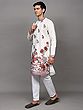 Wedding Kurta Pajama Set with All-Over Woven Floral Motifs in Self