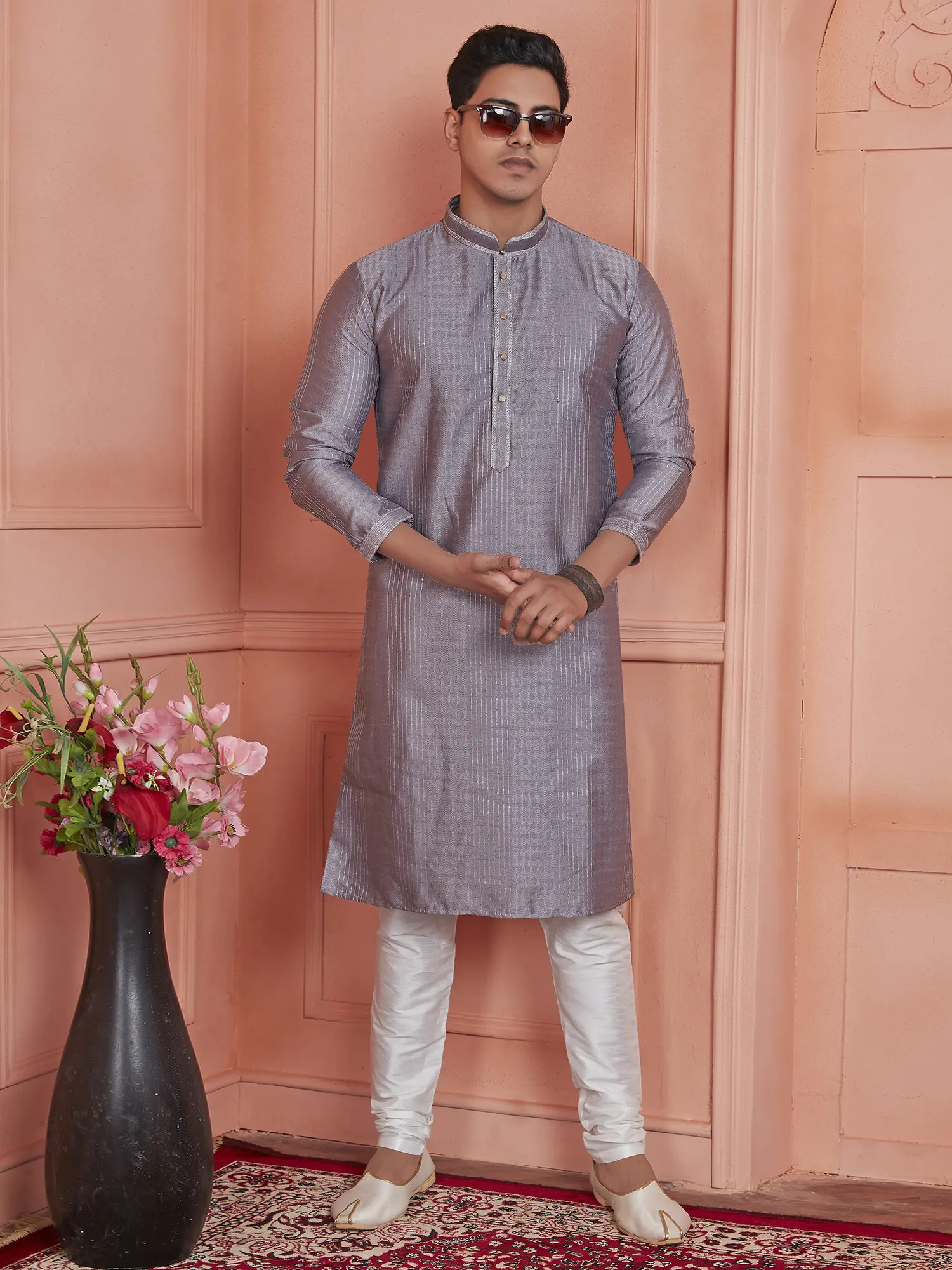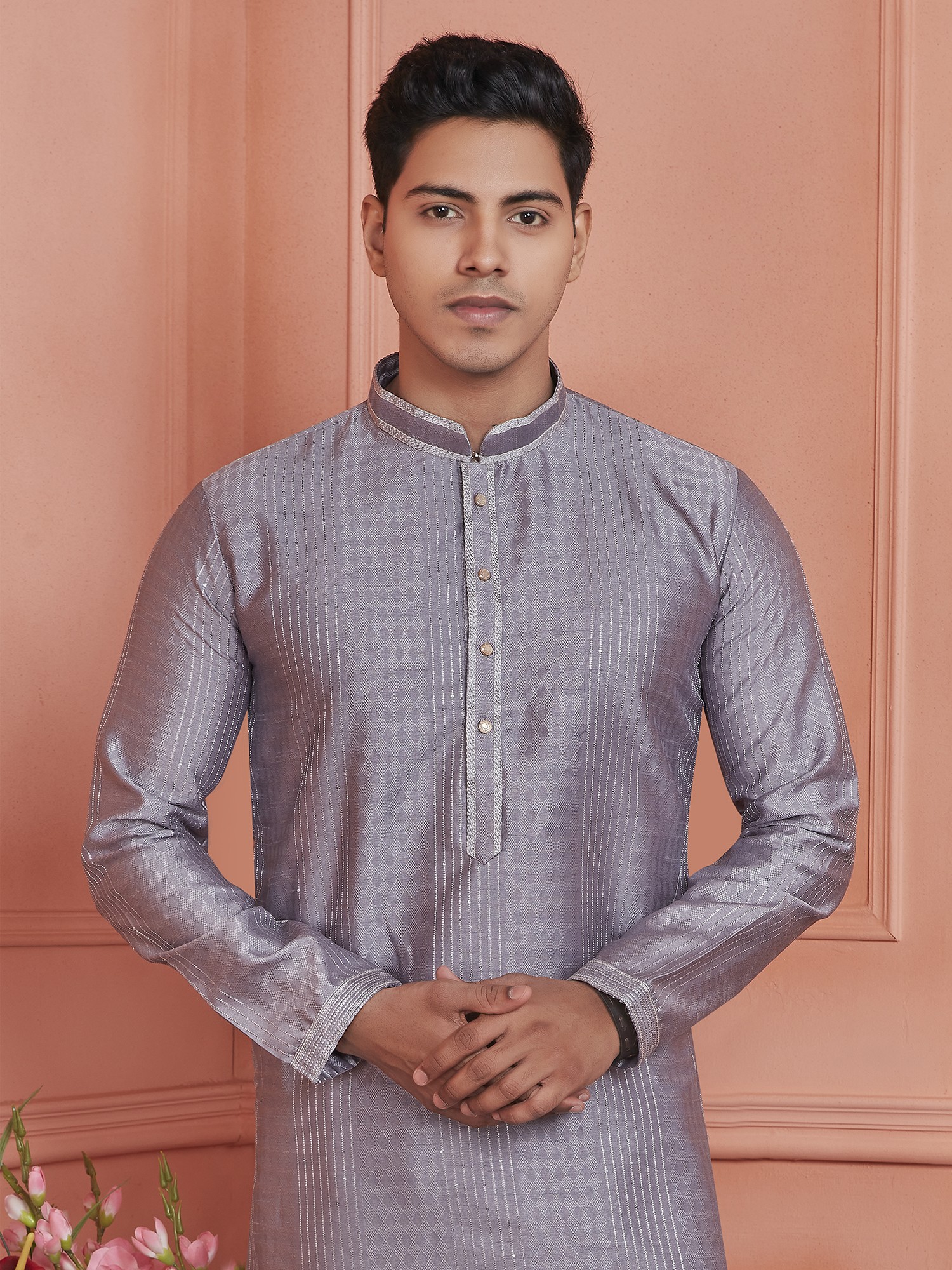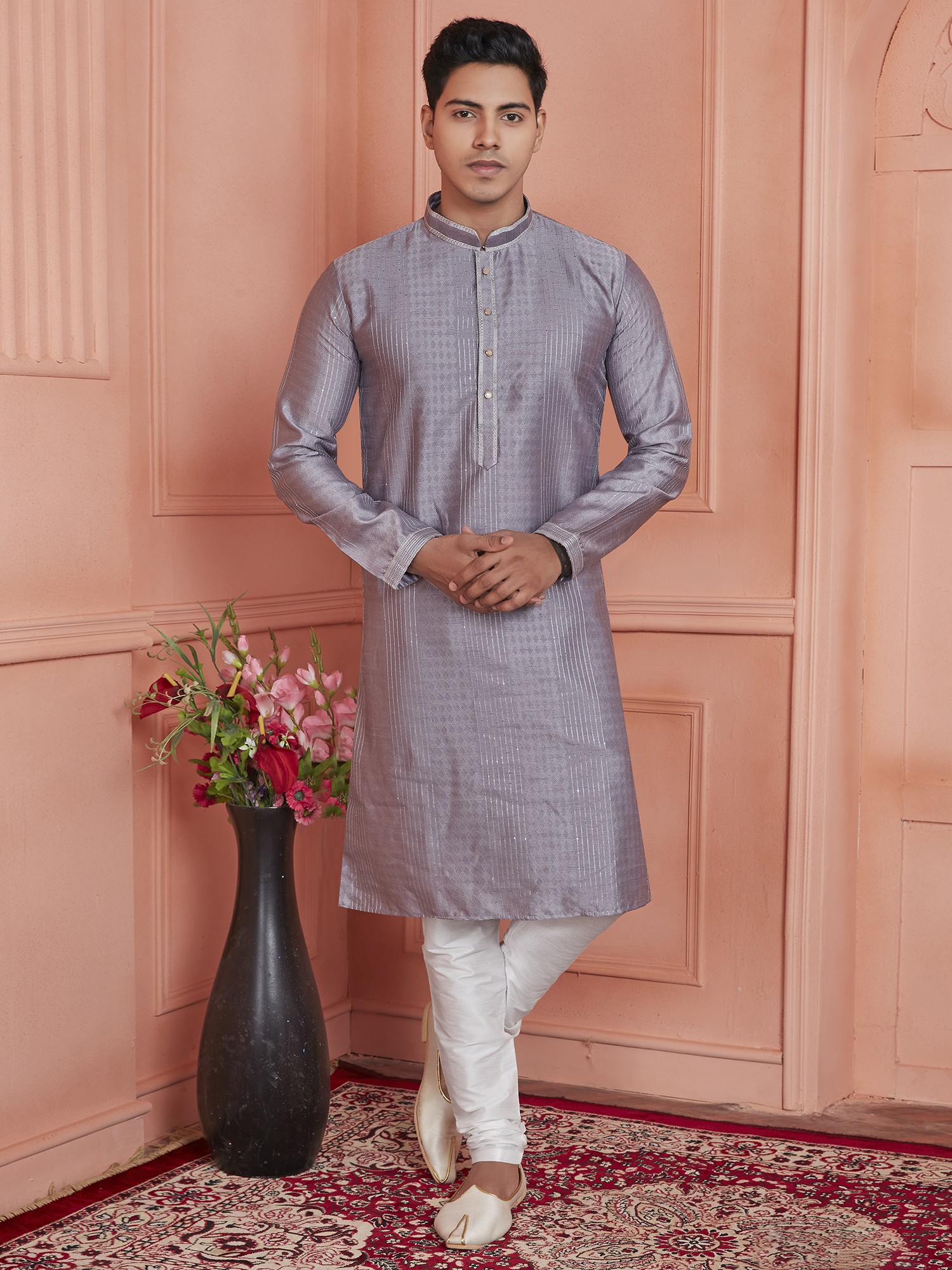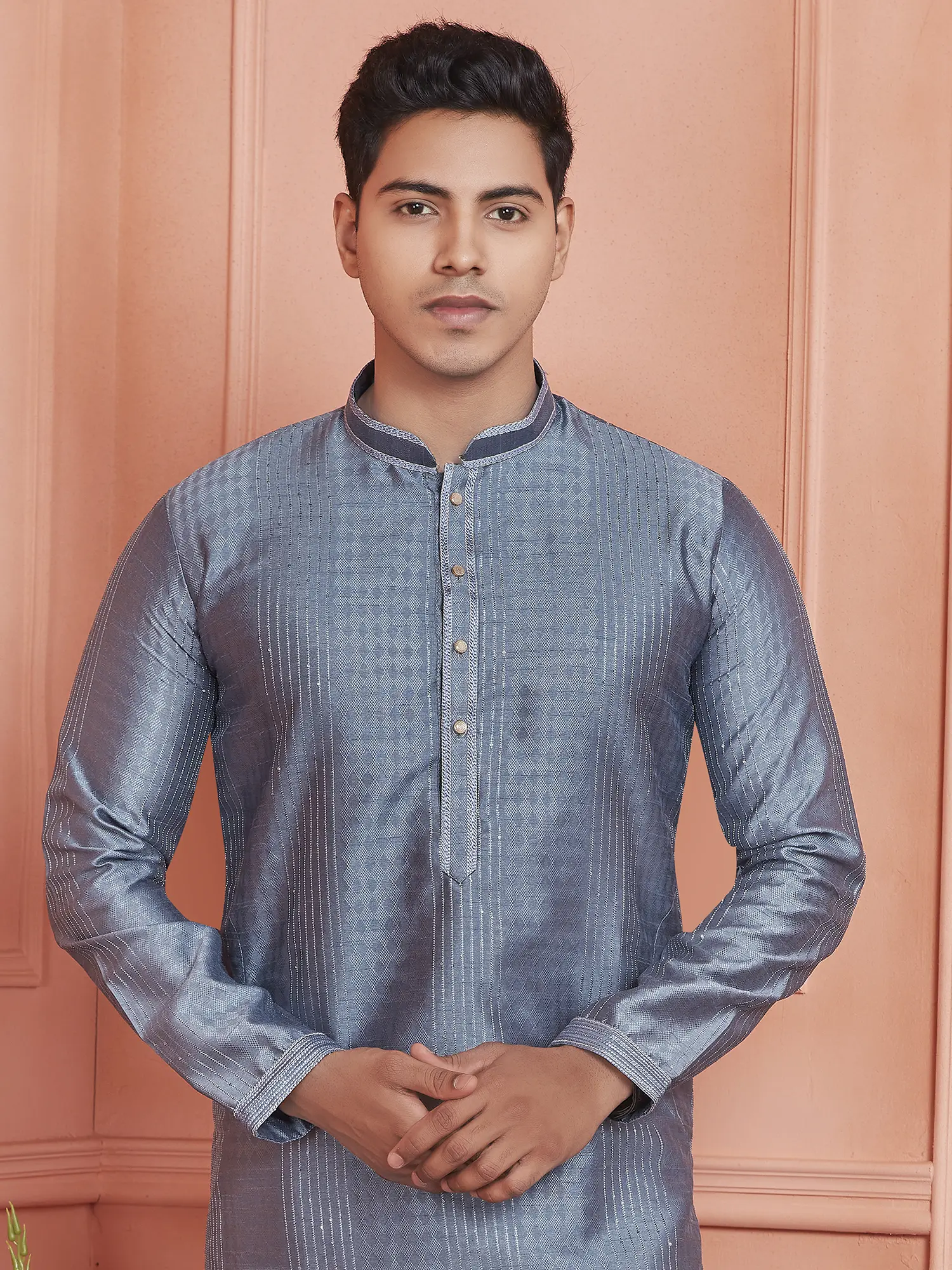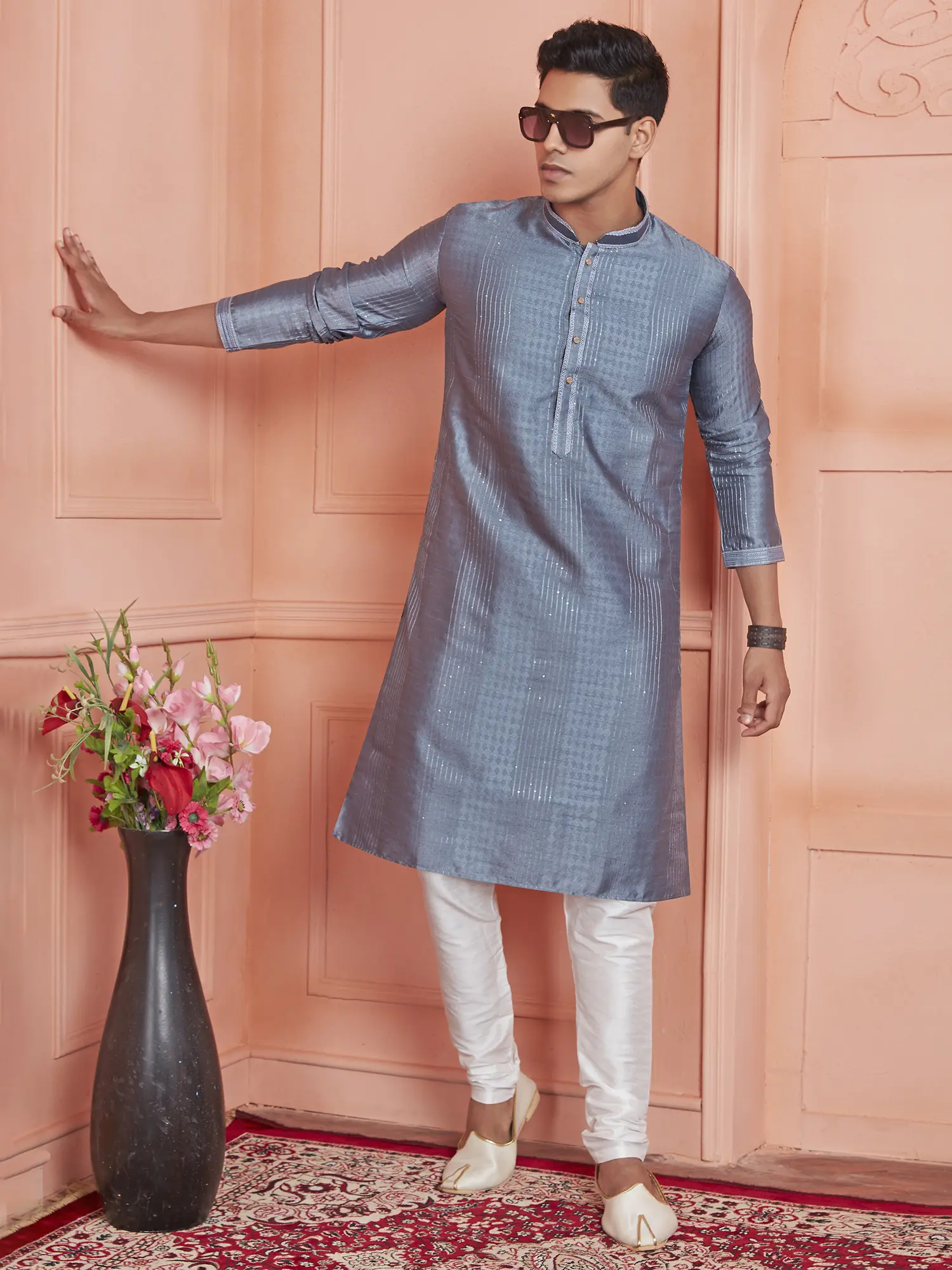 Pirate-Black Embellished Kurta with Sequin Work and Cream Pajama