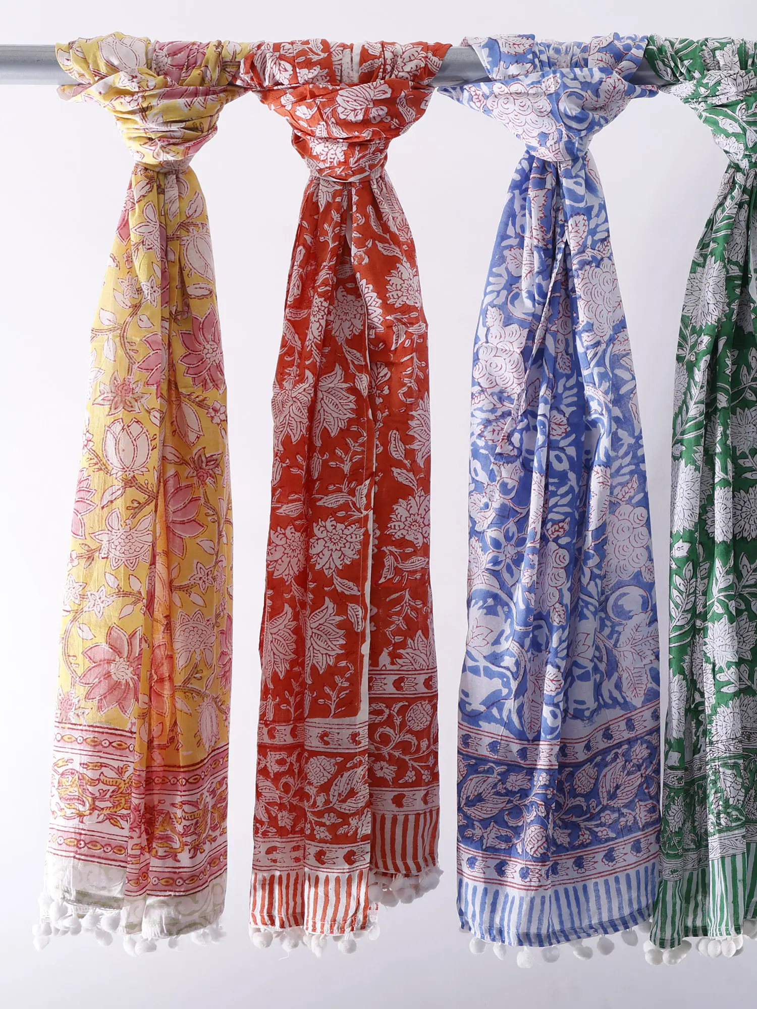Star-White Deer Pattern Cotton Dupatta with Fringe Border