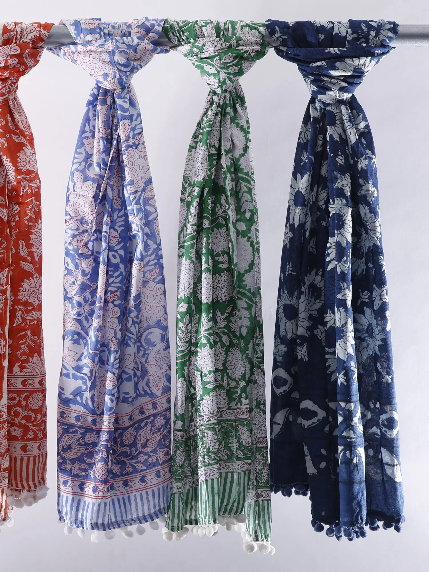 Moroccan-Blue Pure Cotton Stole from Kutch with Soof Embroidery and Stripe Border
