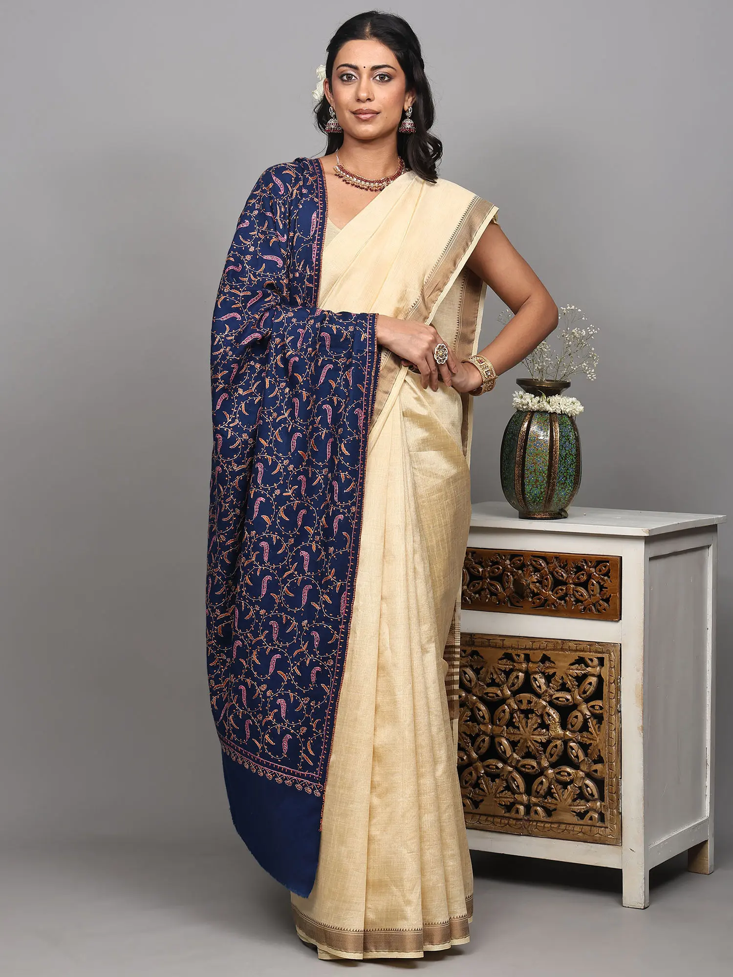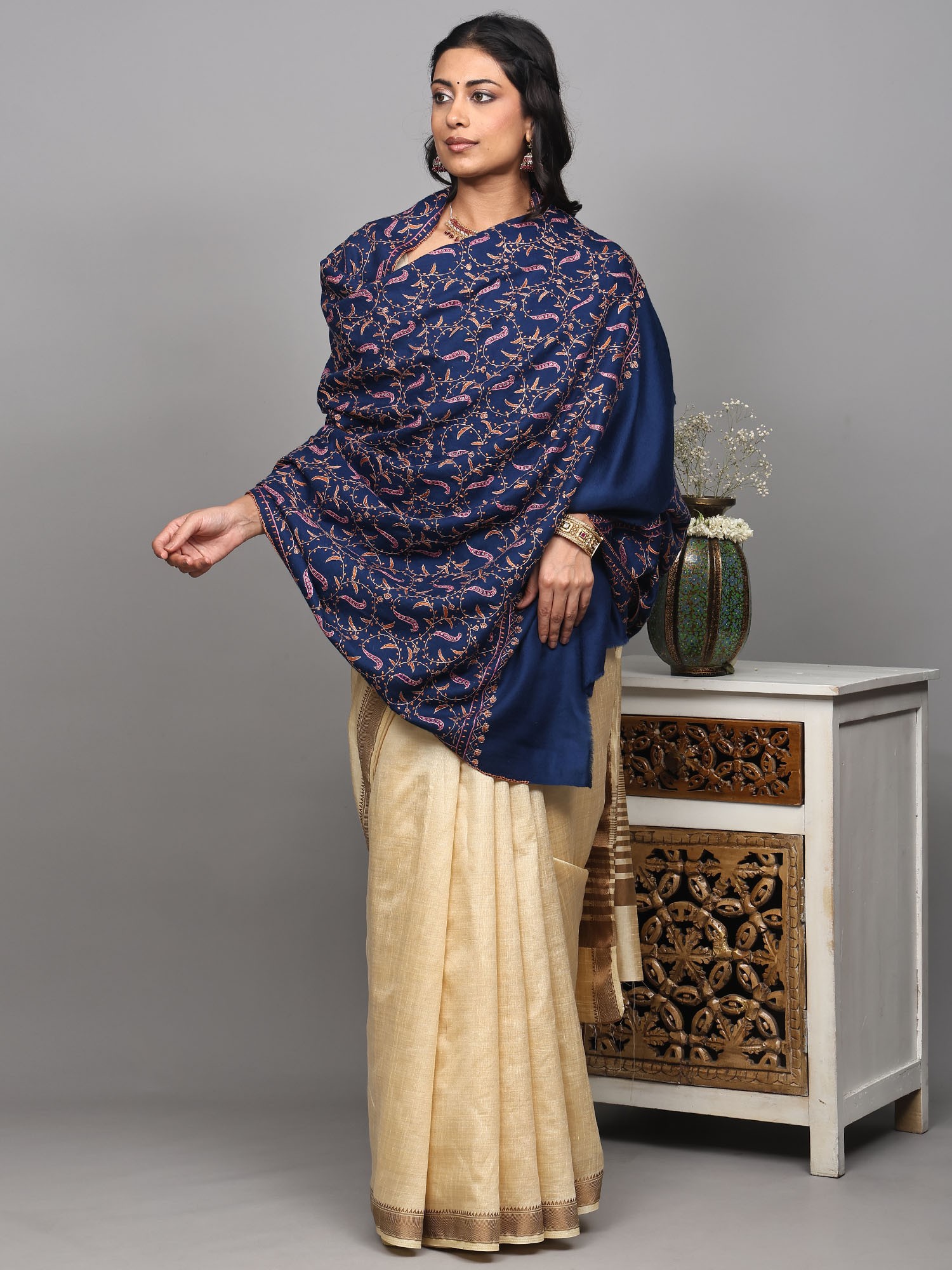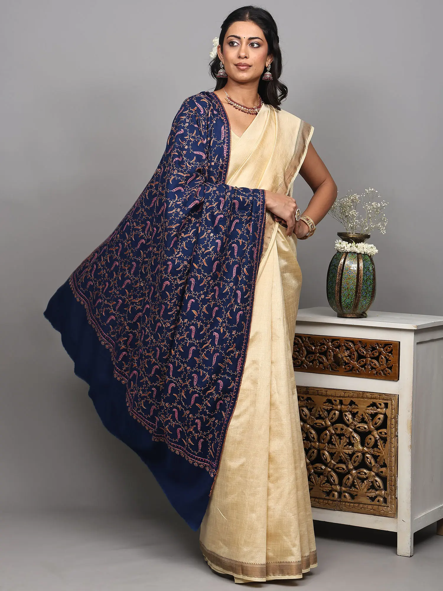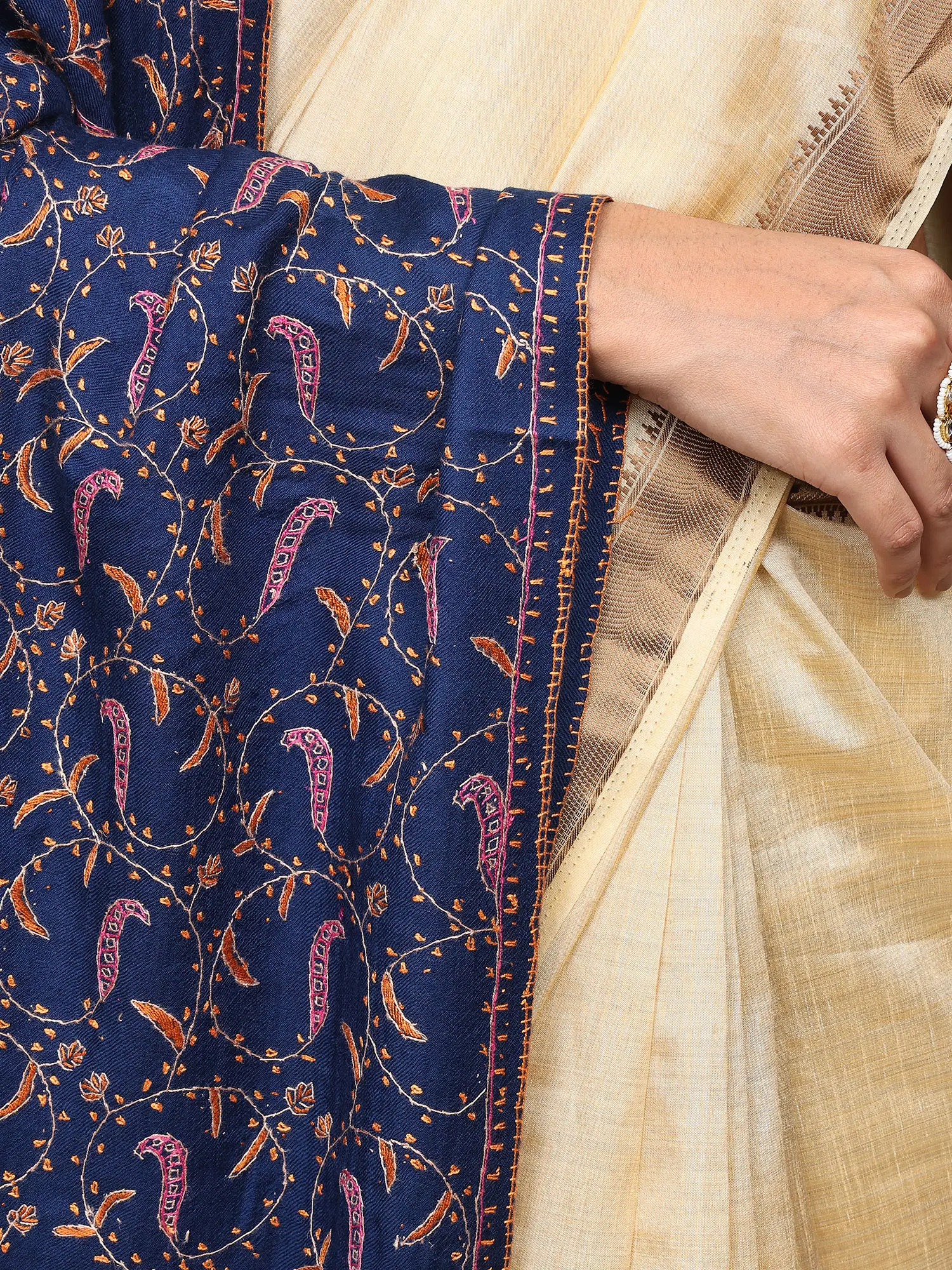 Pure Wool Shawl from Amritsar with Chain Stitch Embroidered Floral Jaal