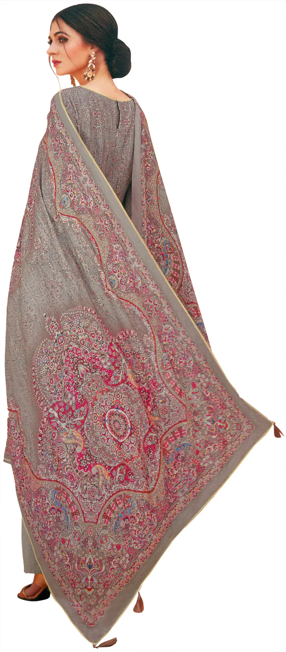 Shadow-Grey Palazzo Salwar Kameez Lawn Suit with Mughal Print