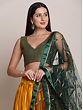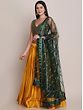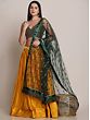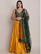 Shartin Silk Platted Style Yellow Lehenga with Taffeta Silk Green Choli and Net Designer Dupatta