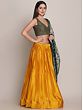 Illuminate the occasion in the Shartin Silk Platted Style Yellow Lehenga paired with a Taffeta Silk Green Choli and a Net Designer Dupatta. This ensemble is a celebration of vibrant aesthetics and meticulous craftsmanship. The shartin silk fabric, intricately platted in yellow, creates a stunning and graceful look. The green taffeta silk choli adds a complementary touch, while the net designer dupatta completes the ensemble with finesse. Each wear becomes a testament to intricate detailing and timeless style, making a statement of refined beauty and cultural richness embodied by this Shartin Silk Platted Style Yellow Lehenga.