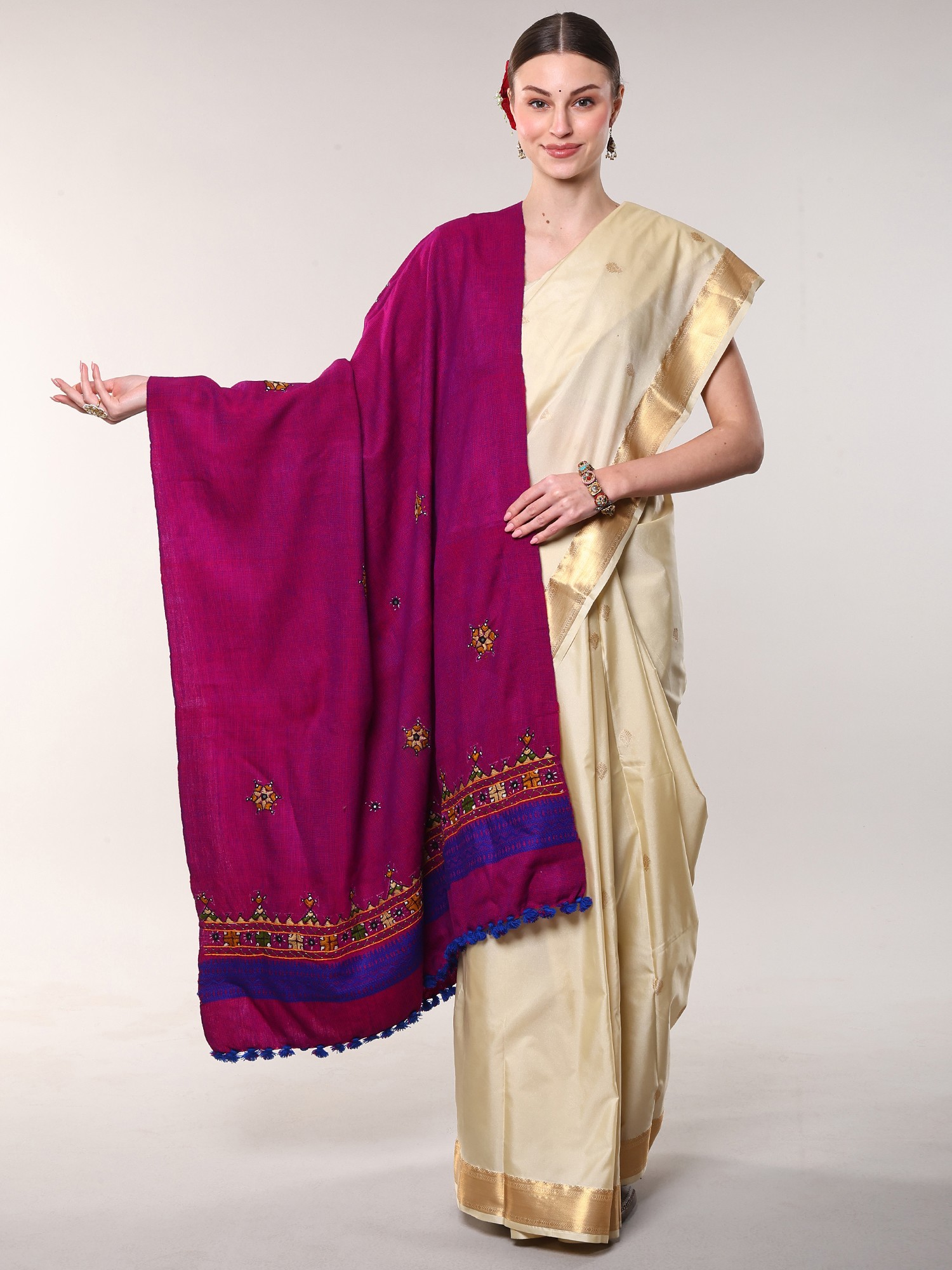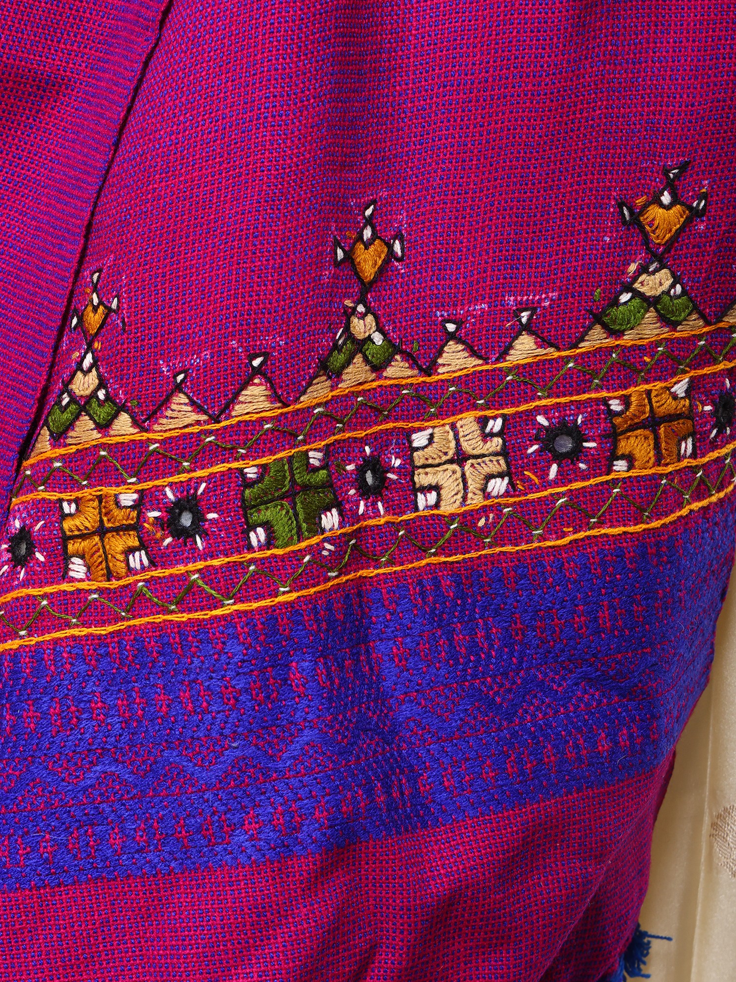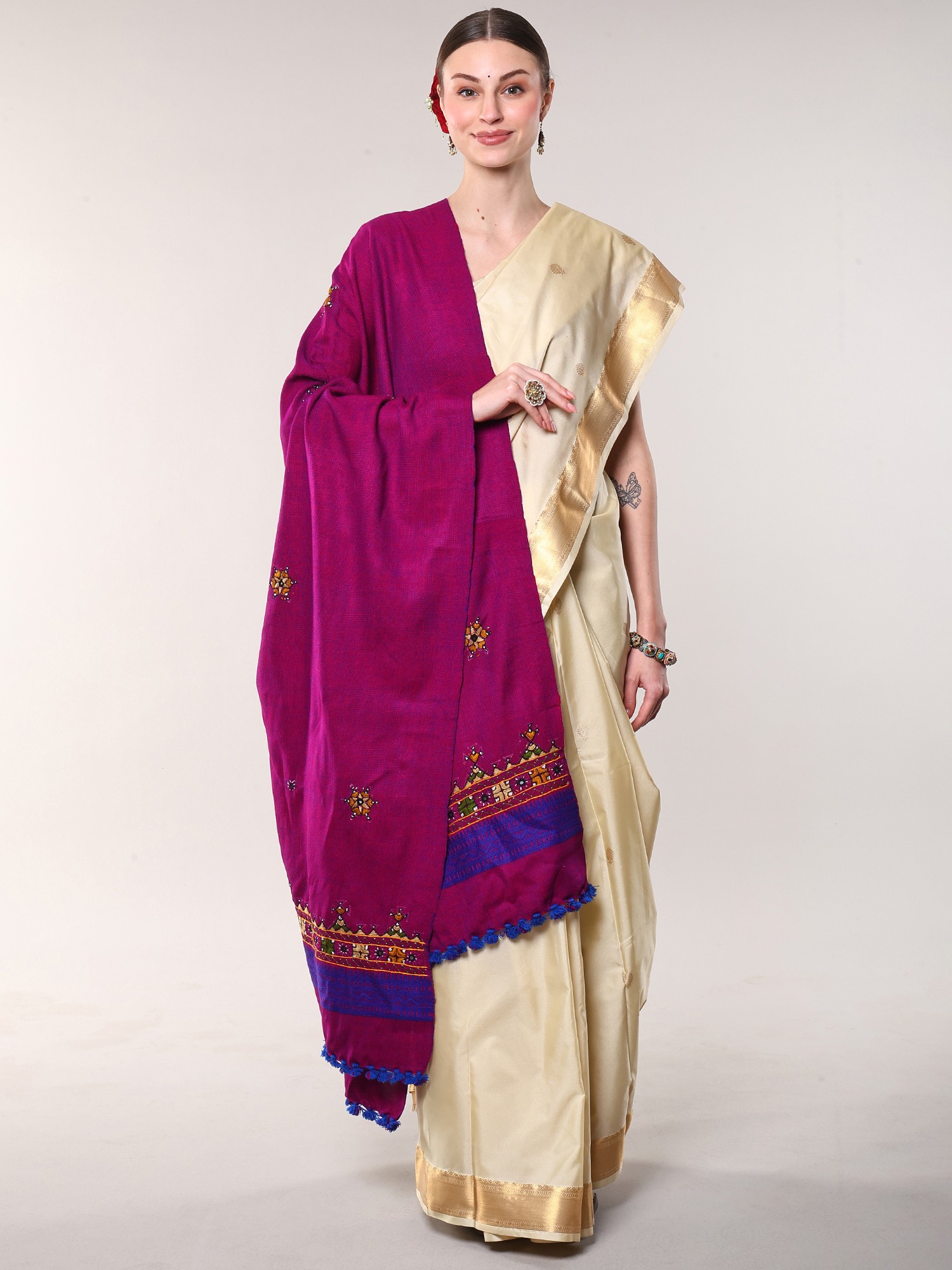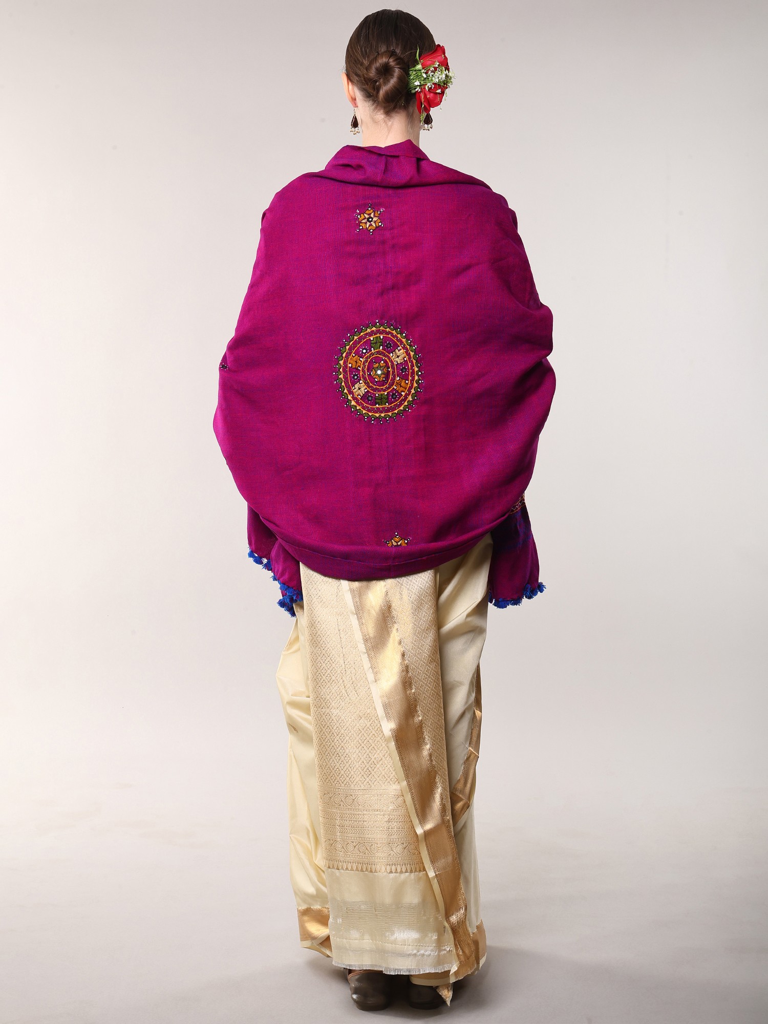 Unveil the artistic marvel of Kutch with our Shawl featuring a central embroidered chakra and mirrors. This shawl represents the rich cultural tapestry of the region. The exquisite embroidery and shimmering mirrors reflect the rich traditions and craftsmanship of Kutch. The earthy colors of this piece resonate with nature, and the fabric drapes luxuriously over your shoulders. This shawl brings together tradition and contemporary style seamlessly. Wearing it not only adorns you with a piece of history but also beautifully complements modern fashion trends with its unique aesthetics.