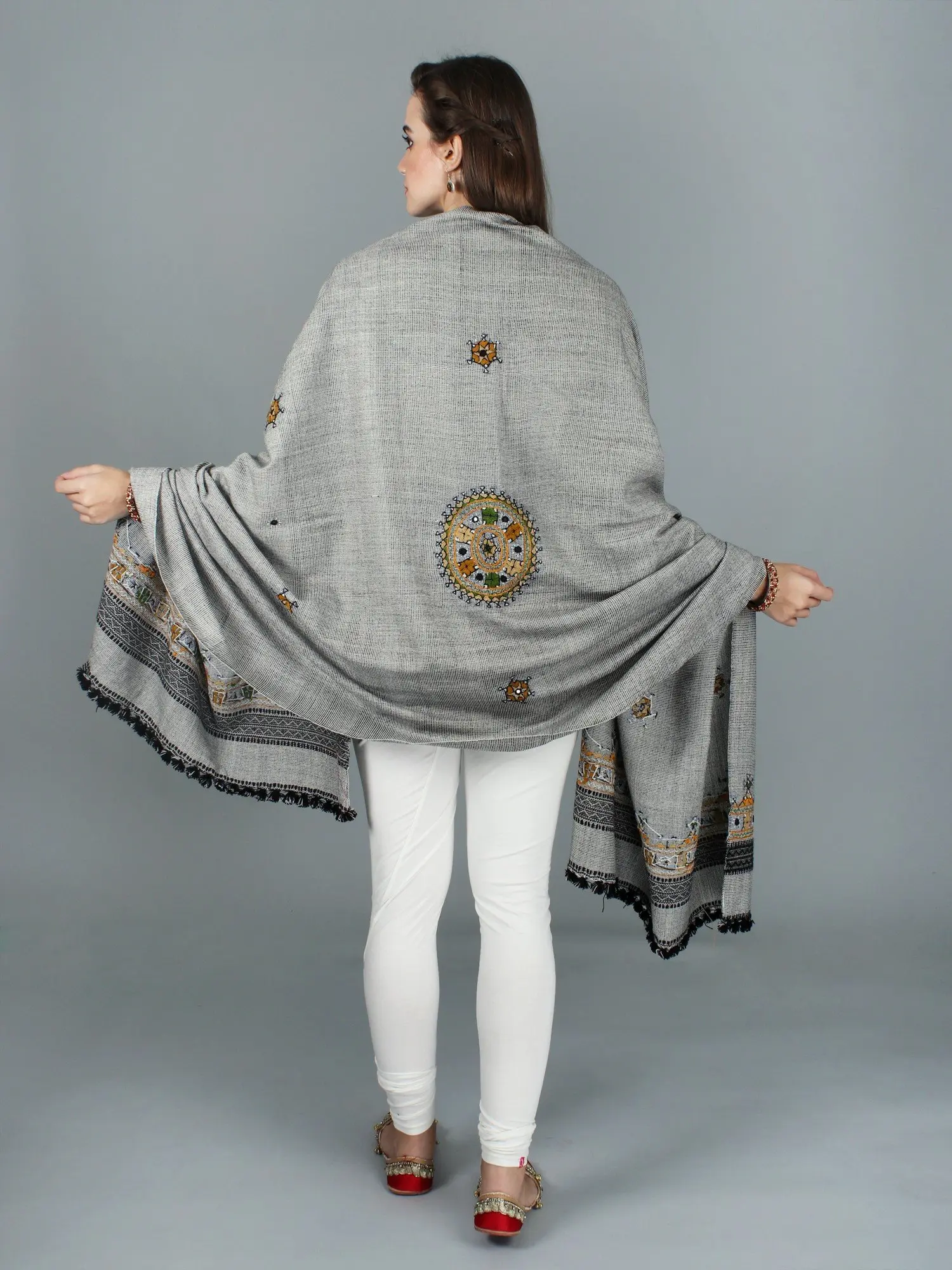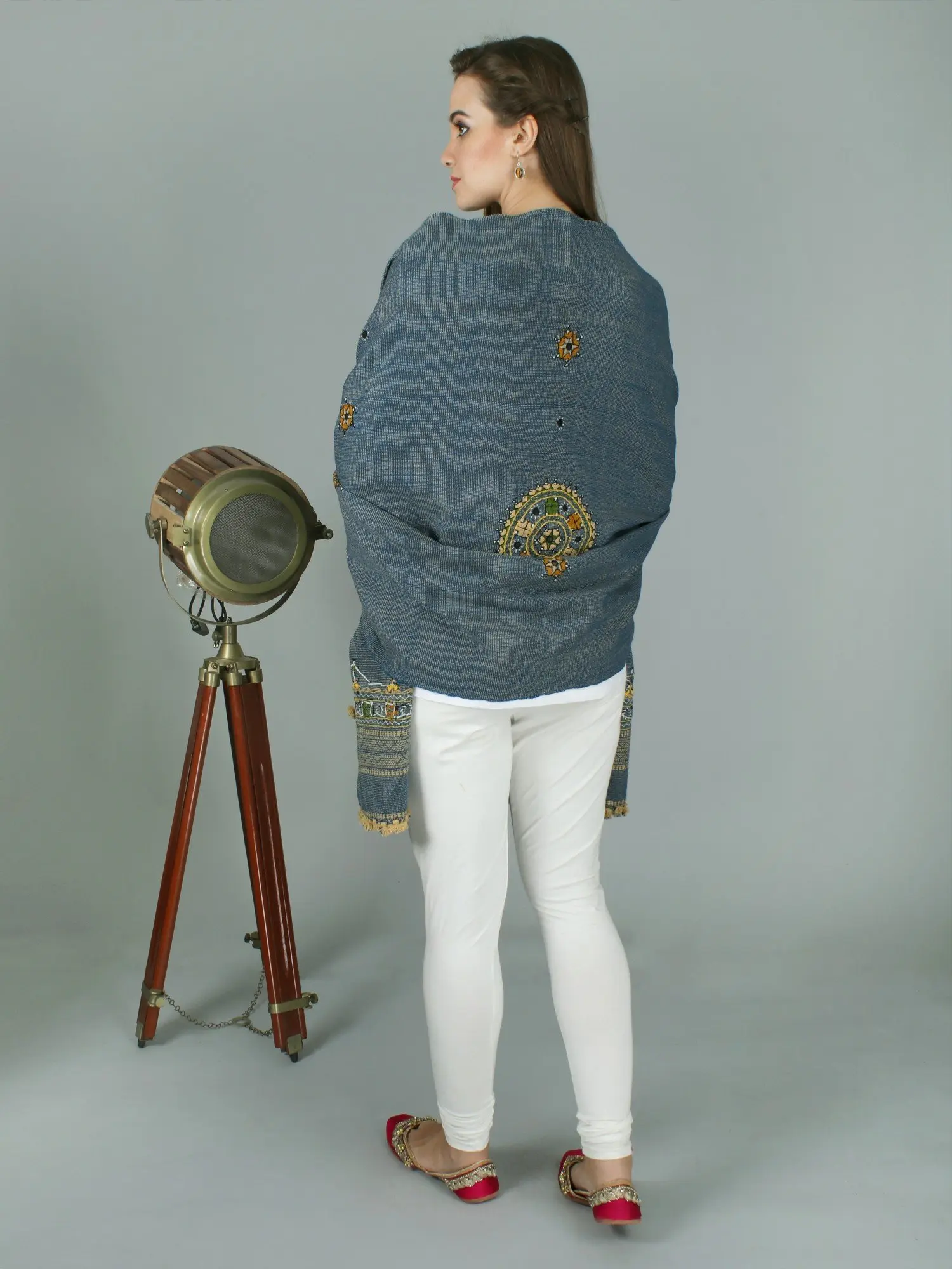 Unveil the artistic marvel of Kutch with our Shawl featuring a central embroidered chakra and mirrors. This shawl represents the rich cultural tapestry of the region. The exquisite embroidery and shimmering mirrors reflect the rich traditions and craftsmanship of Kutch. The earthy colors of this piece resonate with nature, and the fabric drapes luxuriously over your shoulders. This shawl brings together tradition and contemporary style seamlessly. Wearing it not only adorns you with a piece of history but also beautifully complements modern fashion trends with its unique aesthetics.