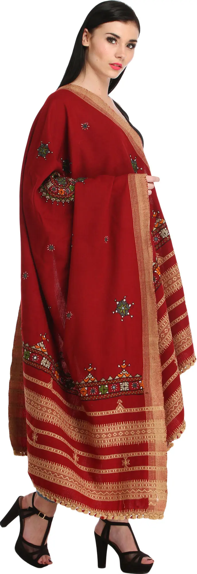 Shawl from Kutch with Multicolor Mirror Embroidered Bootis