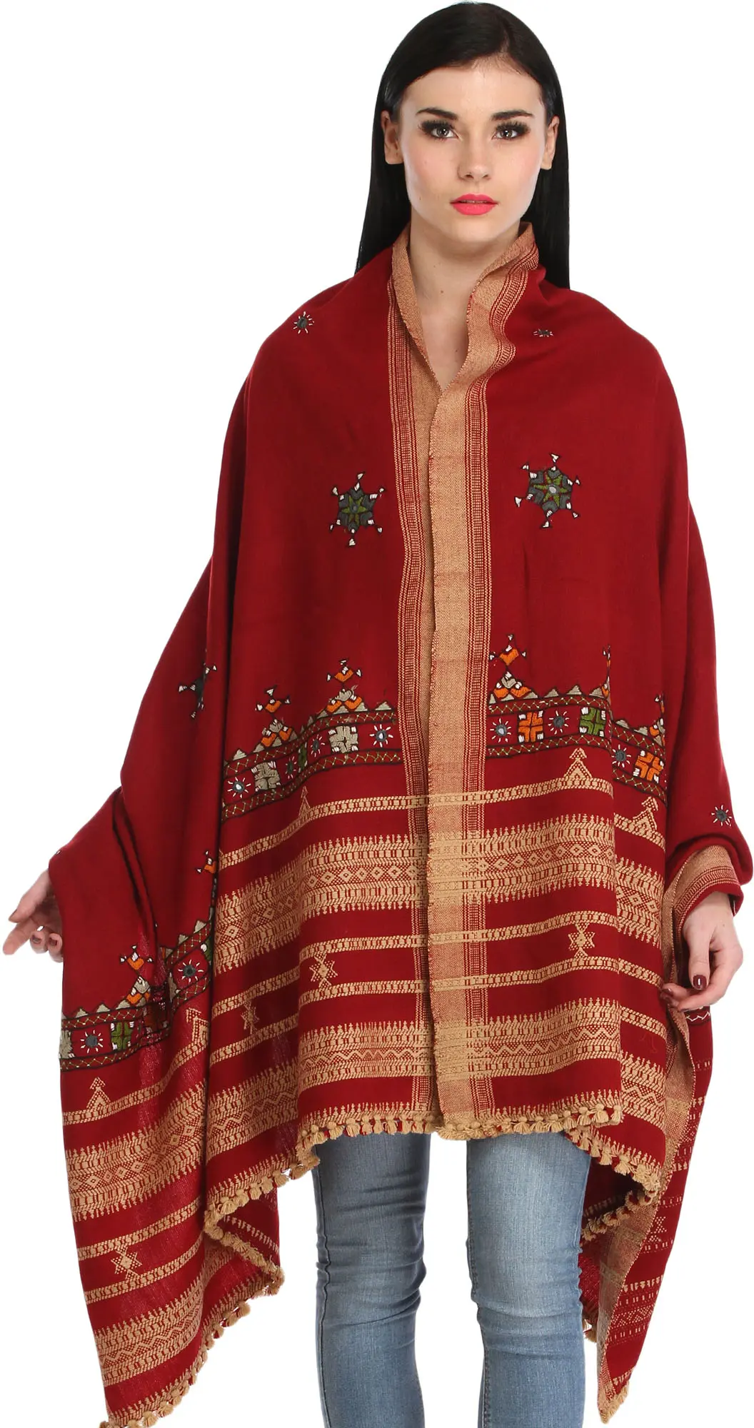 Woolen Plain Shawl from Kutch with Mirror Embroidery