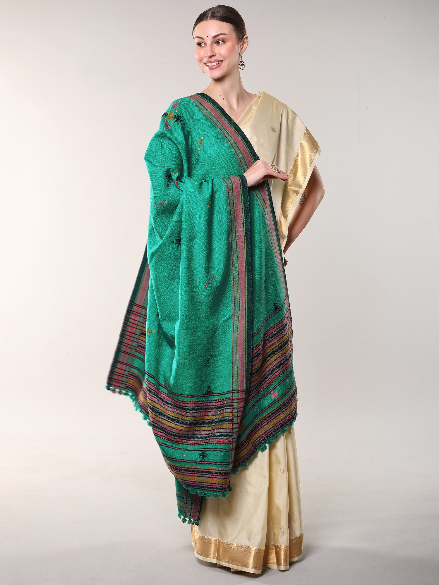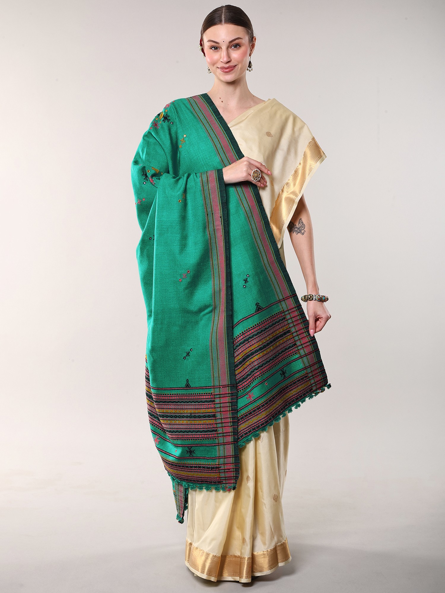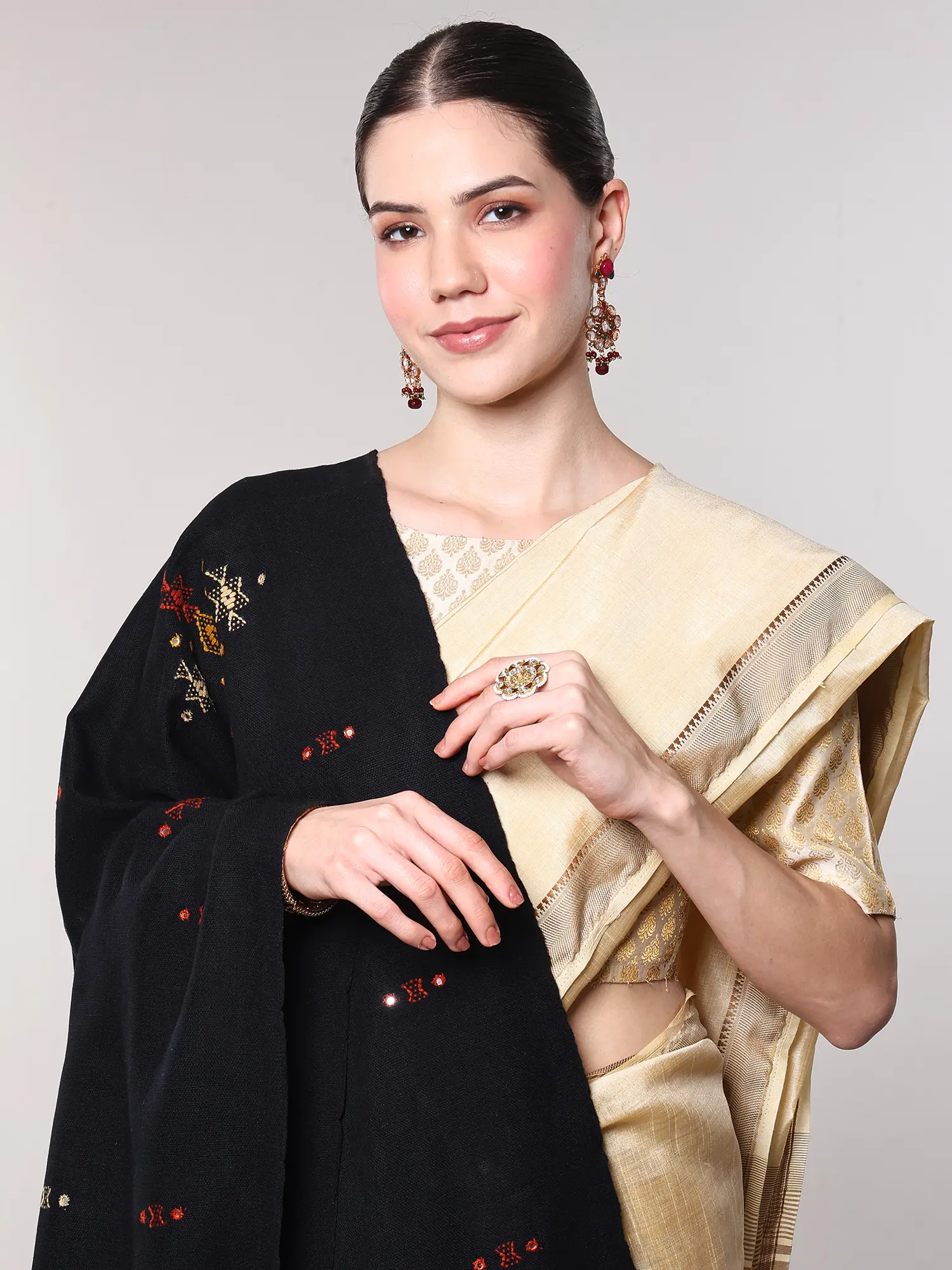 The Kutch shawls have a very long history in textile, they aren’t simply woven. The shawl's weaving is composed of a variety of geometric patterns and embroidery. Additionally, after the artist finishes the piece, they finish the piece with mirror works— weaving, embroidery, and mirror work; these three components aren’t just simple components. They are the main components and trademarks of kutch shawls. When a person wears a Kutch shawl It is more than just wearing an accessory, it is an appreciation of art and culture. It also enables the wearer to carry a piece of Kutch's history and its folks' creativity.