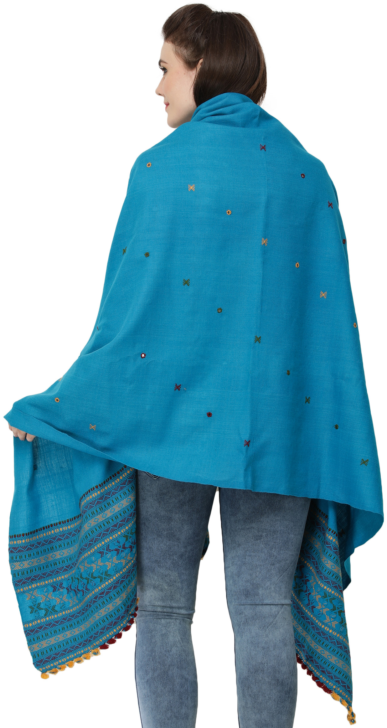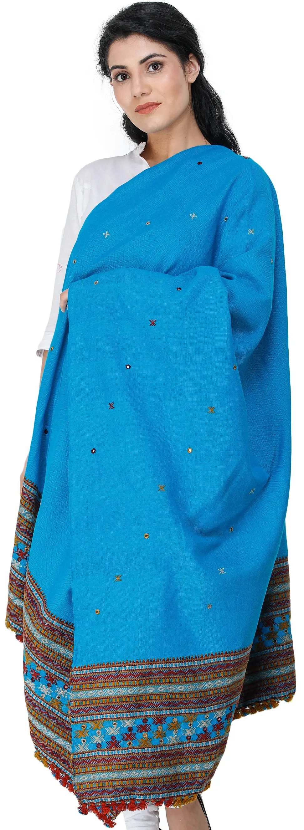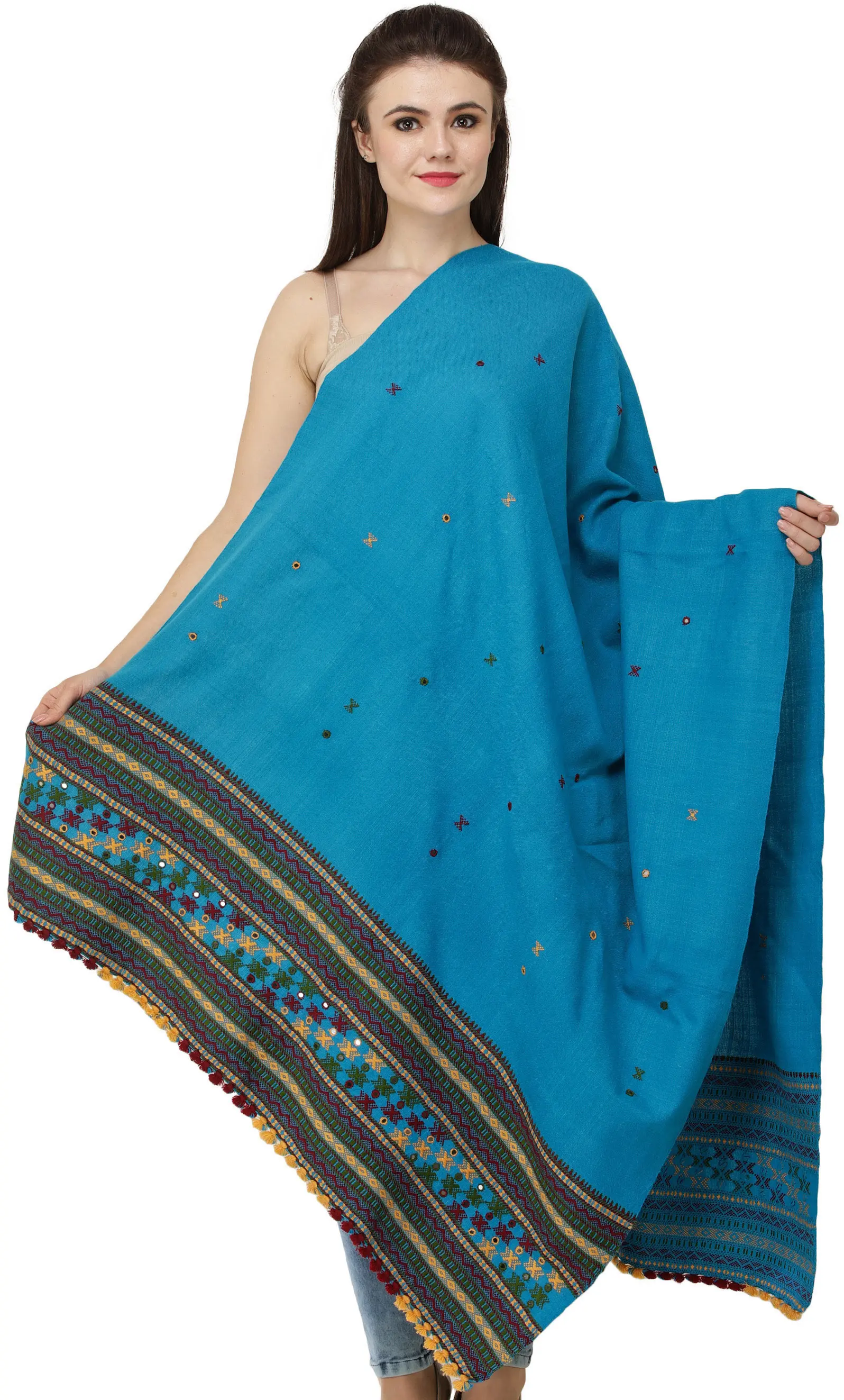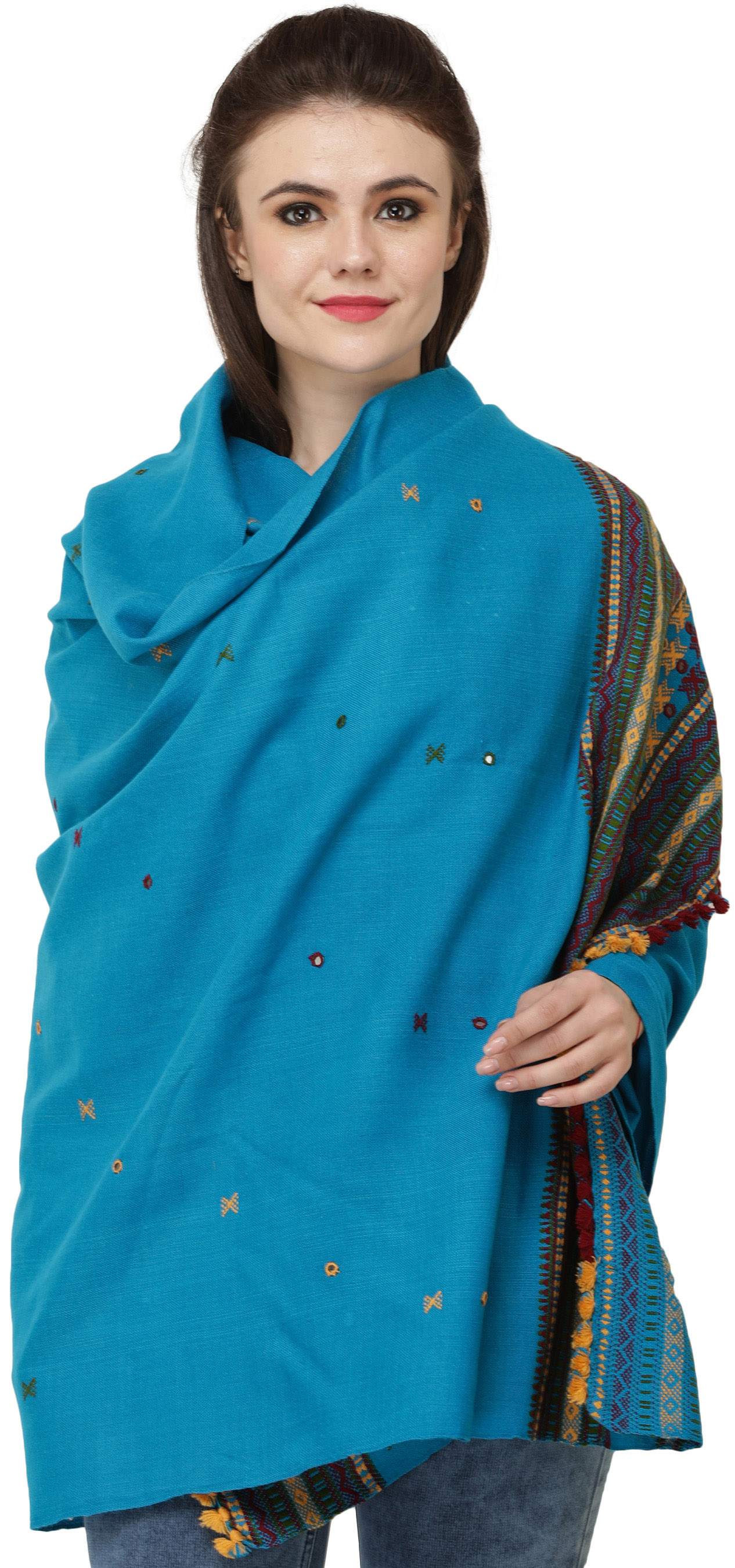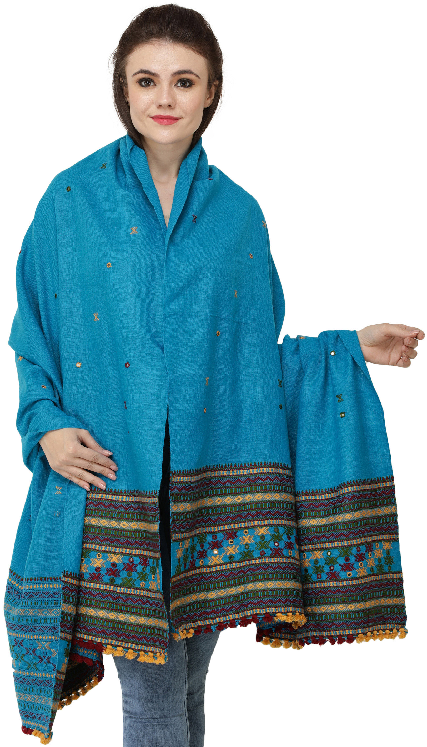 Multi-color Hand-woven Folk Shawl from Kutch