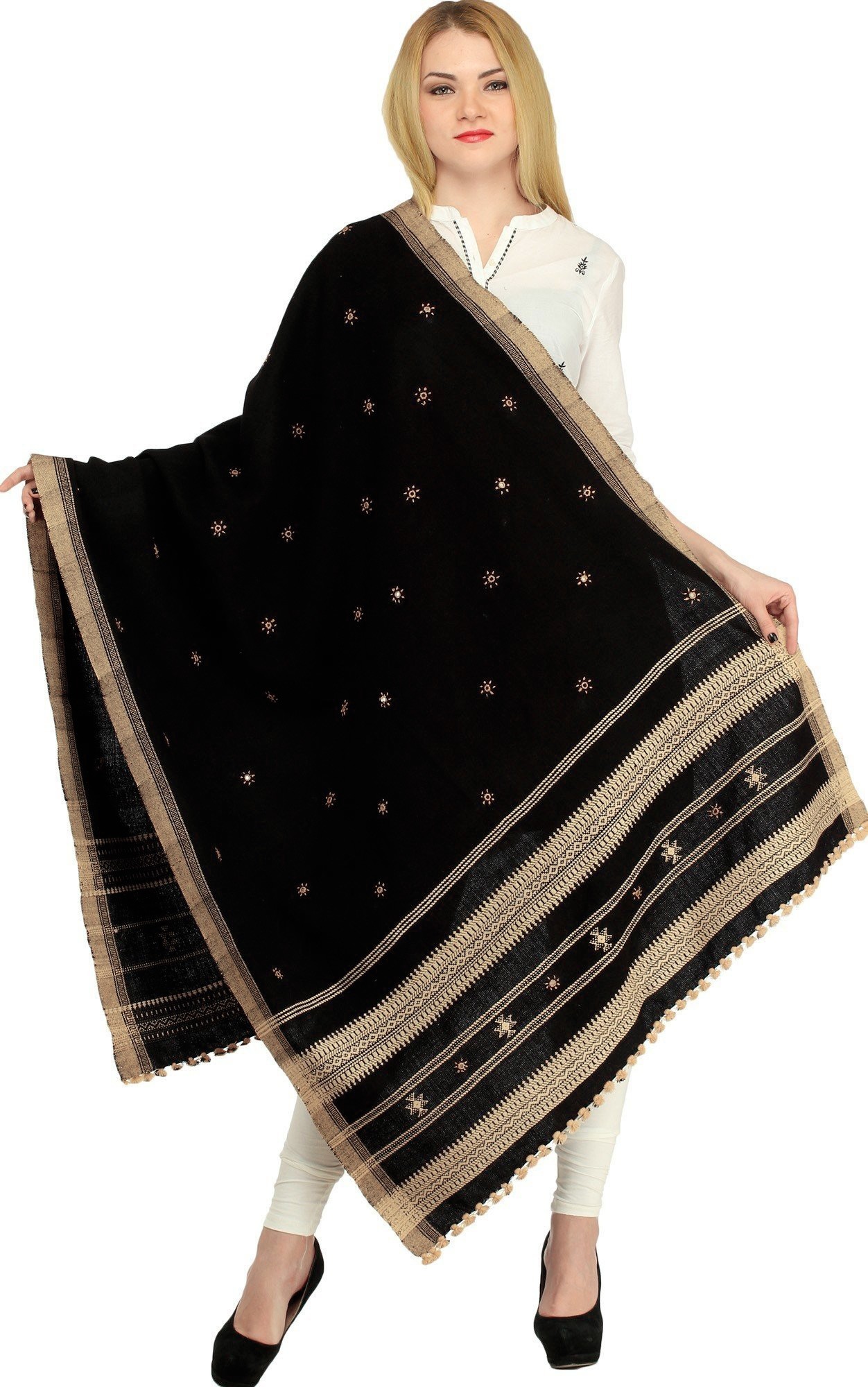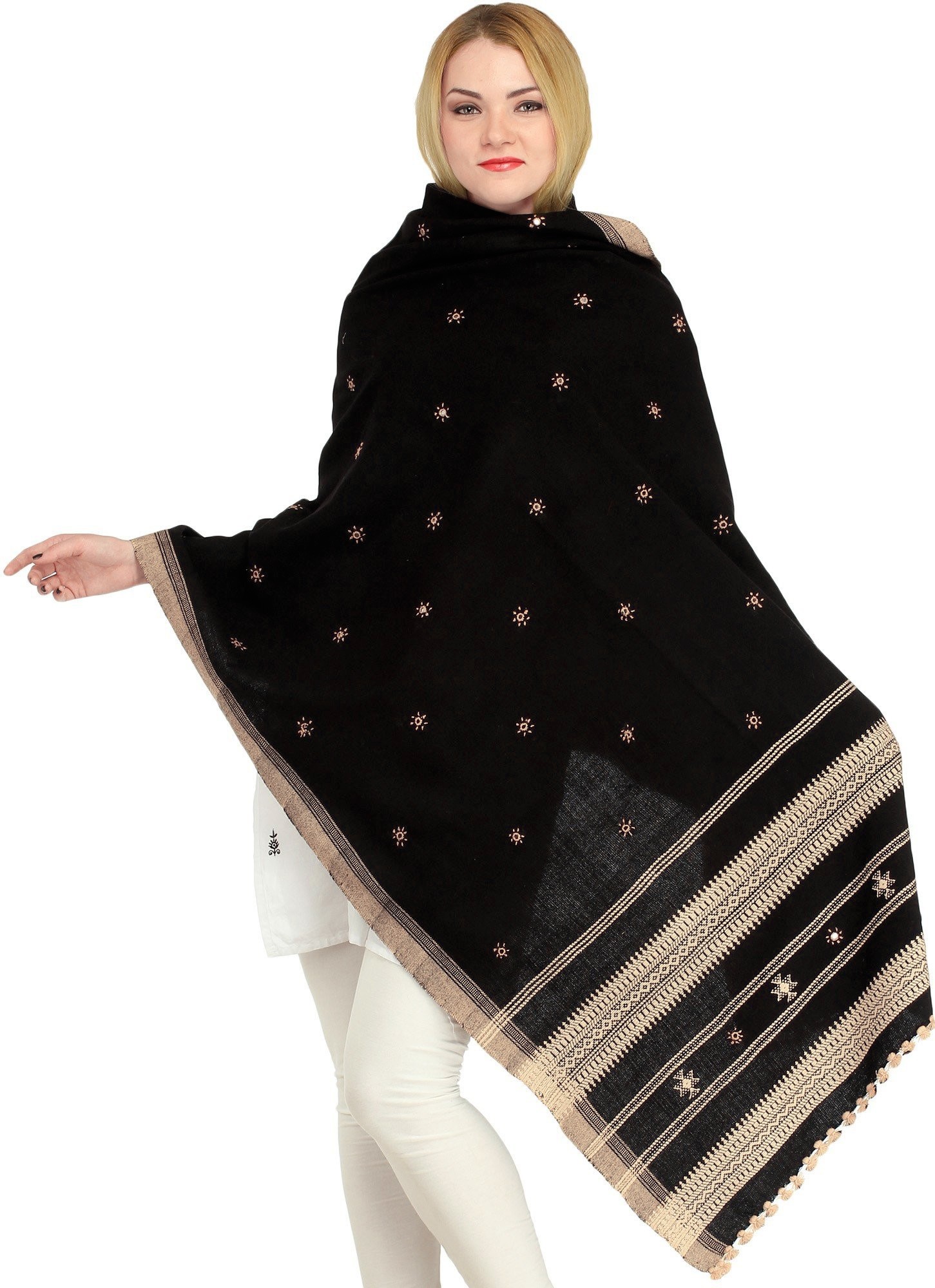 This shawl from Kutch is a step into a vibrant world of Kutch with Embroidered Florals and Mirrors that go finely with exotic shades of green. Kutch's textile tradition is as colorful as its culture. This shawl encapsulates that spirit, with hand-embroidered flowers and mirrors that shimmer like desert stars. The art of Kutchi embroidery is as ancient as the land itself, evolving through generations. Today, it finds harmony with contemporary fashion trends, adding a touch of tradition to modern style. Wearing this shawl, you drape yourself in the heritage of Kutch, where each thread and mirror reflects the vibrant history and craftsmanship of the region.