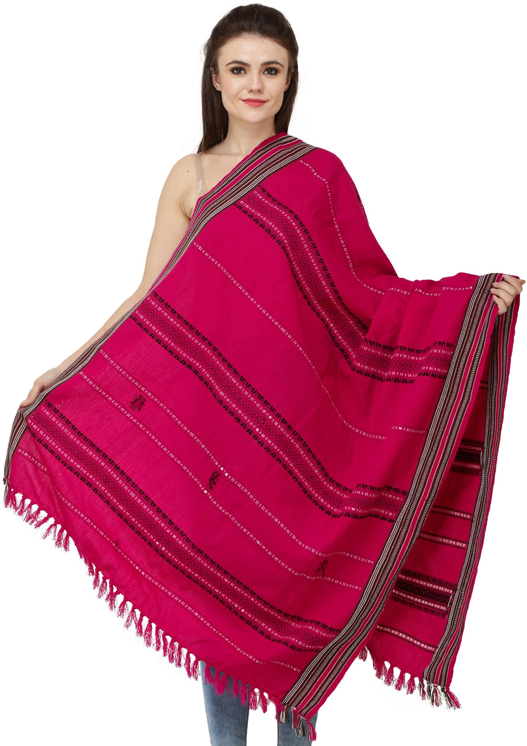Elevate your style with our Shawl from Nagaland, a mesmerizing blend of tradition and contemporary fashion. The woven border and thread weave are a testament to the skilled hands that craft these shawls. Nagaland's textile heritage is a journey through time, and this shawl reflects the region's unique design aesthetics. The earthy colors draw inspiration from the rich Naga culture. By embracing these pieces, you not only carry a part of Nagaland's history but also adorn yourself with the intricate artistry that resonates with modern fashion trends.