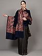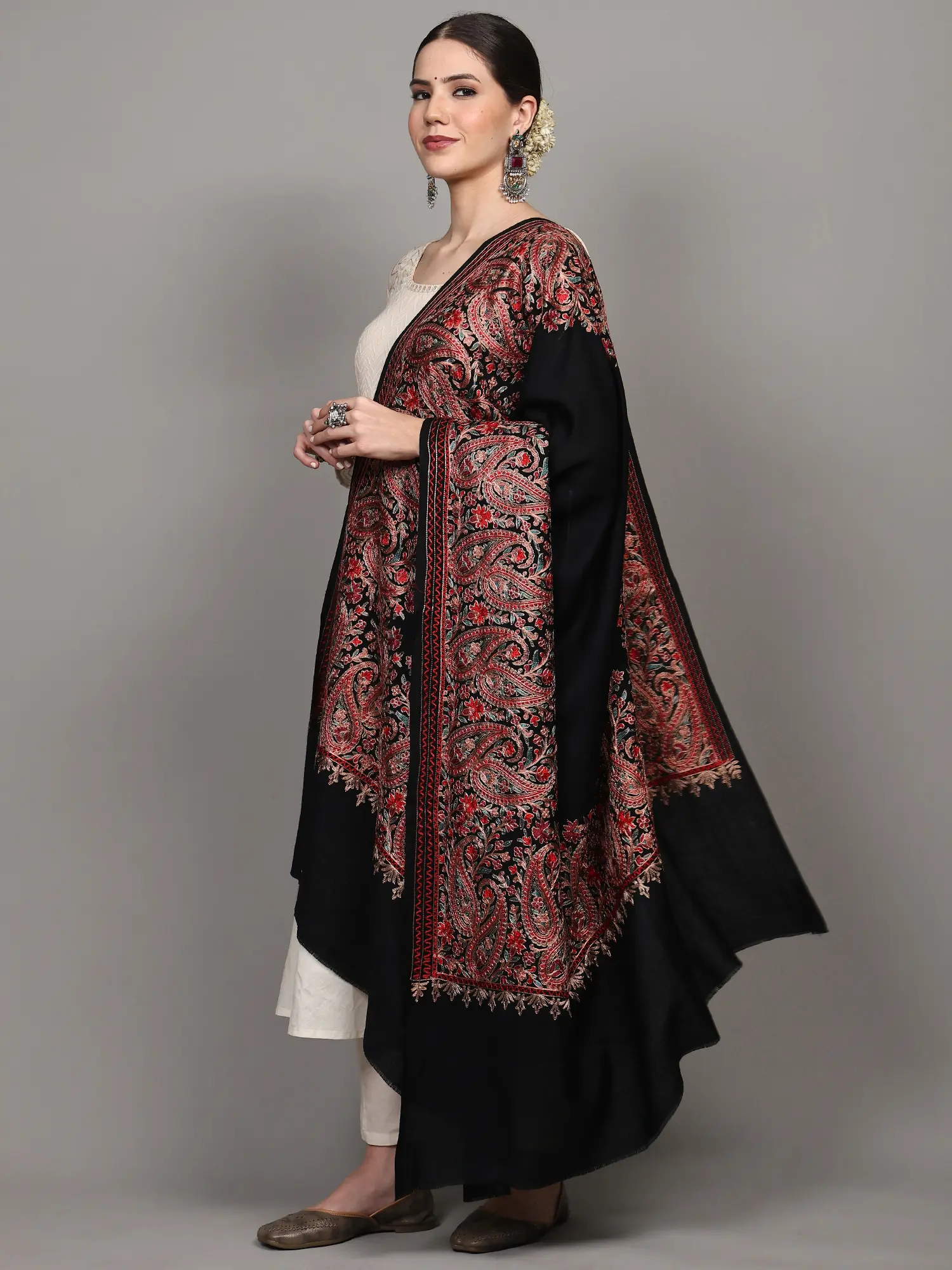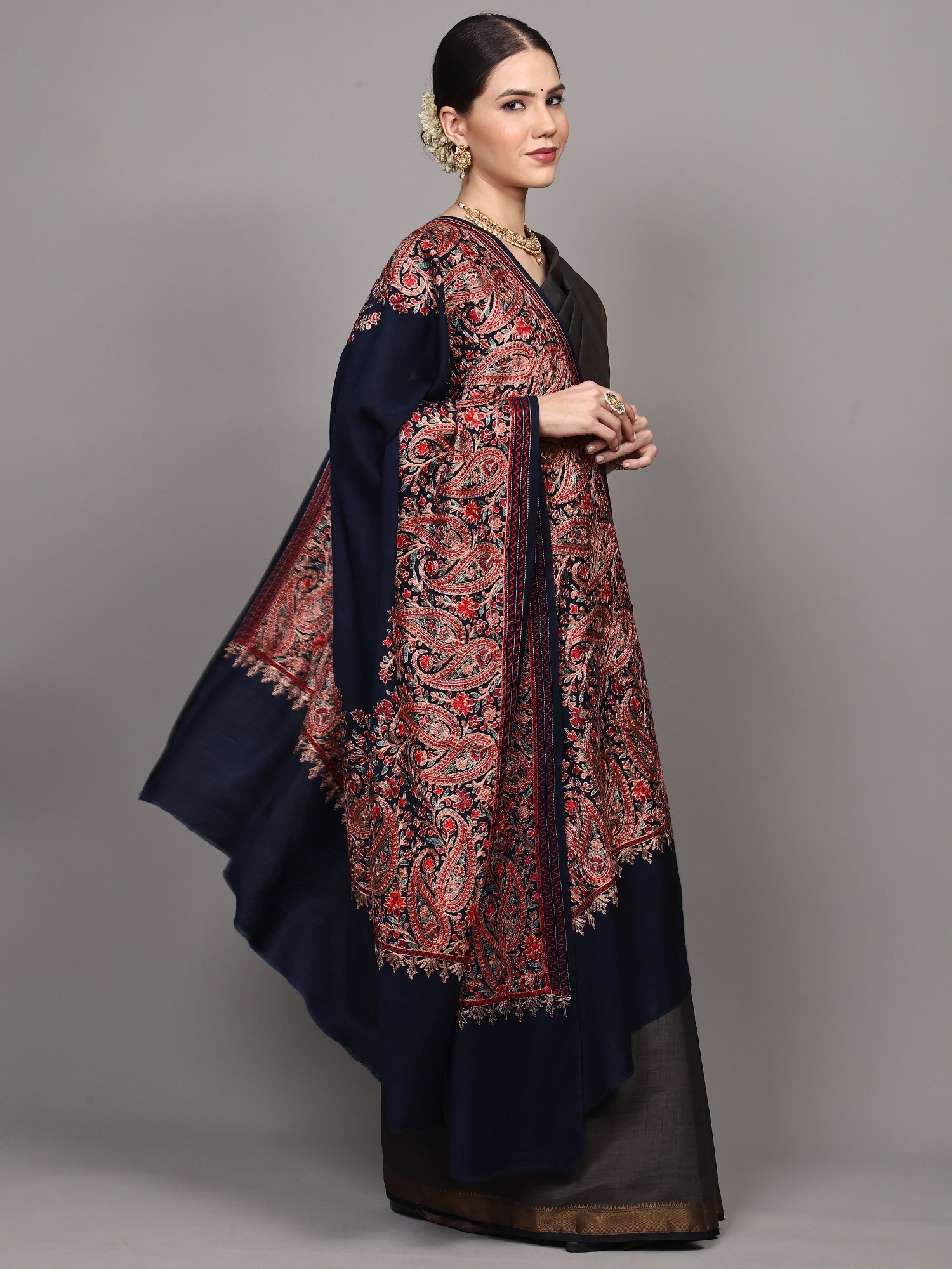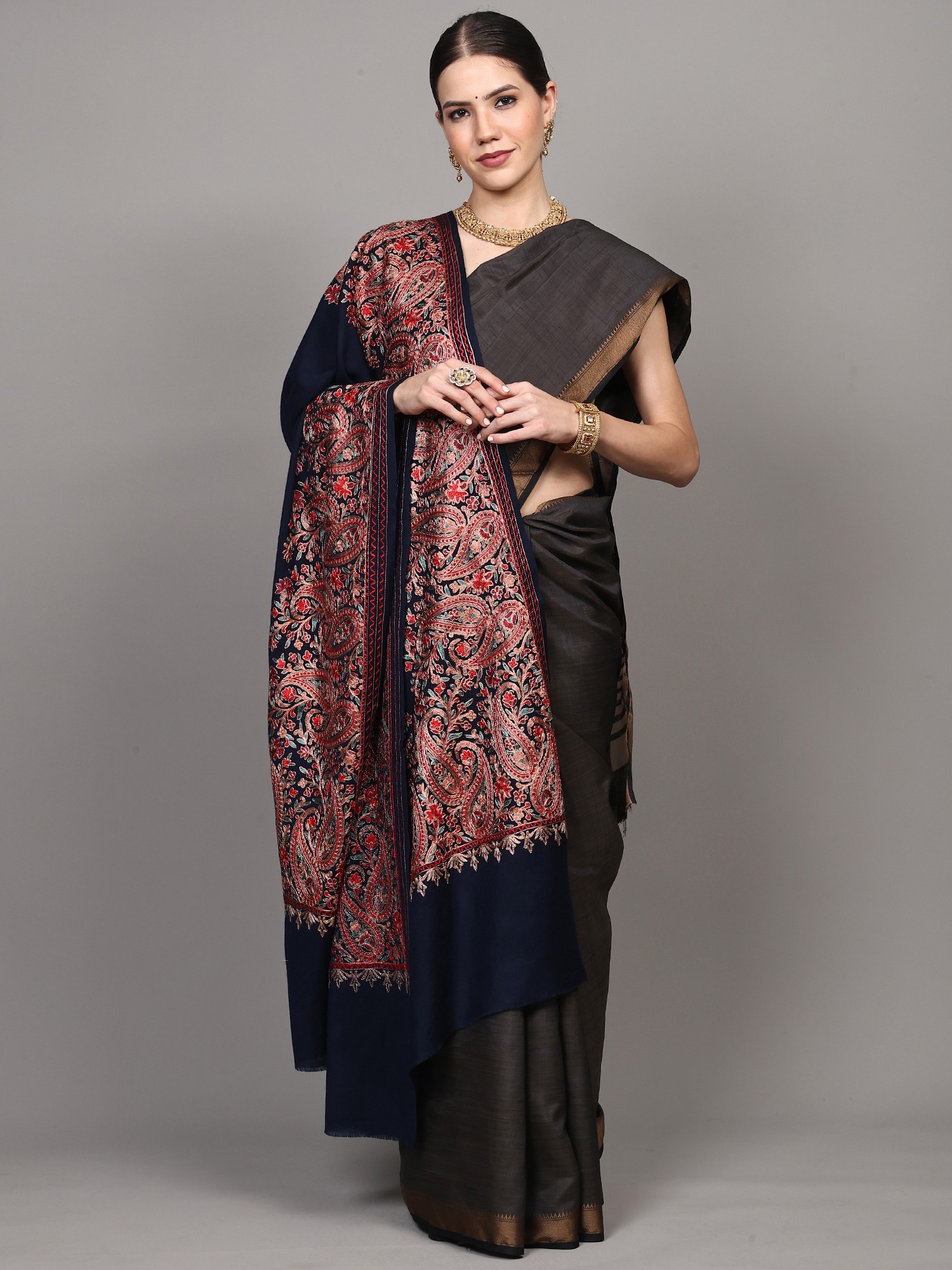Pure Wool Plain Kashmiri Tusha Shawl with Sozni Hand Embroidered Wide Border