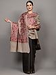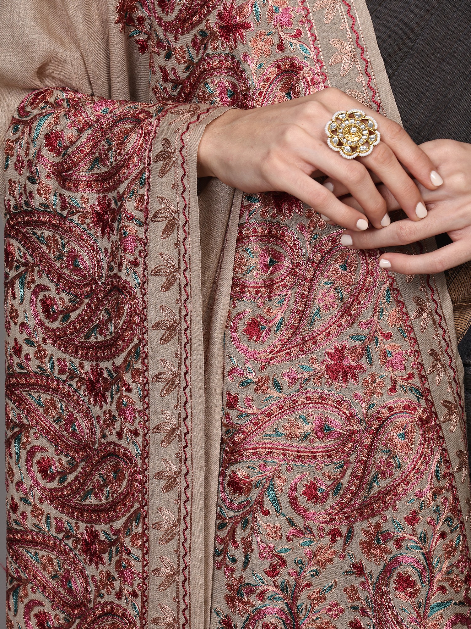 Mocha-Mousse Pure Pashmina Handloom Shawl from Kashmir with Sozni-Embroidered Border