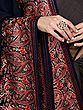 Cannoli-Cream Pure Wool Long Jacket from Kashmir with Intricate Chain Stitch Embroidered Foliage and Side Pockets