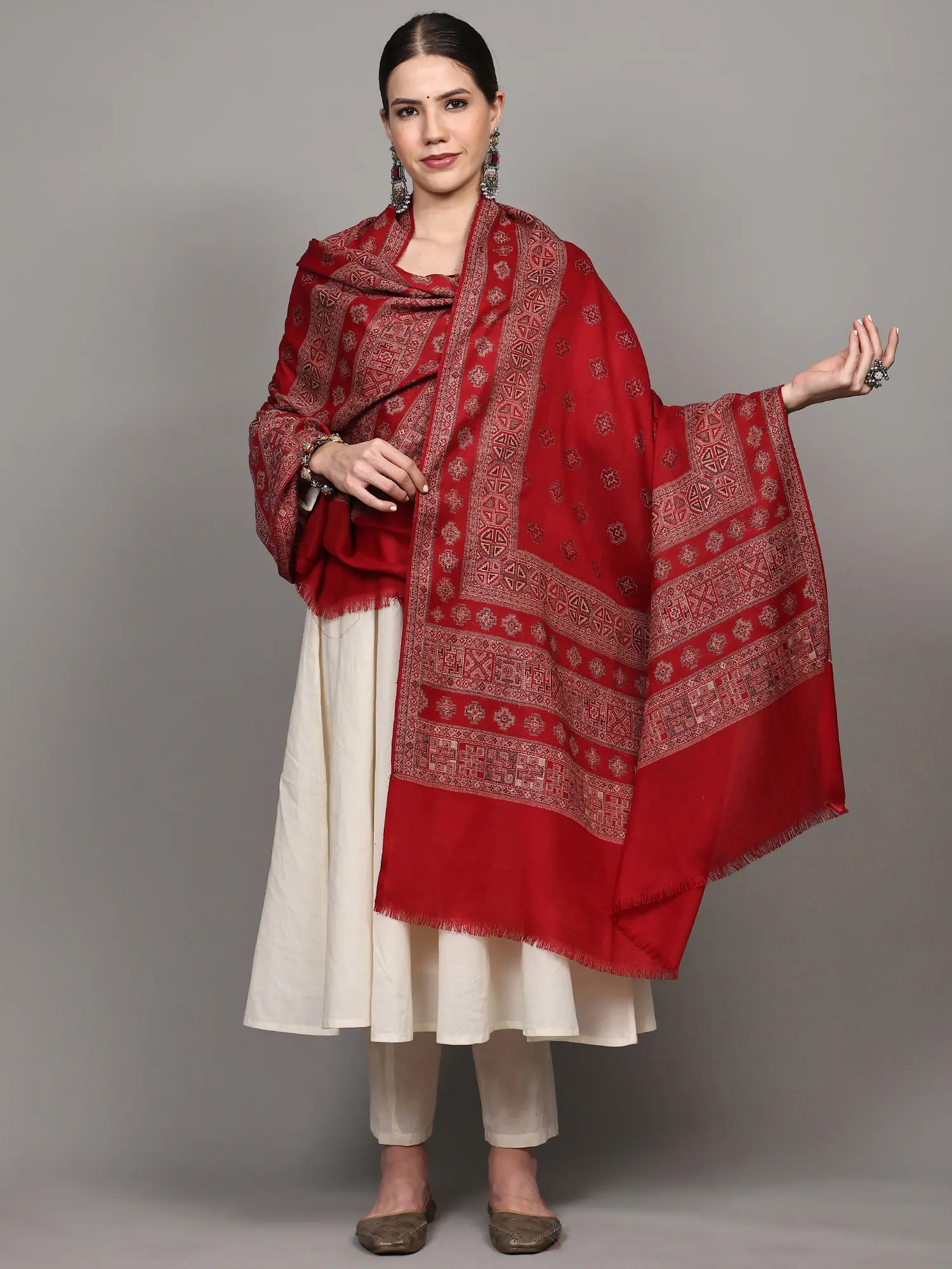 Scarlet-Sage Stripes Woven Shawl from Amritsar with Sozni Embroidery