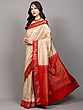 Tri-Color Pure Cotton Temple Border Saree from Sambalpur with All Over Ikat Woven