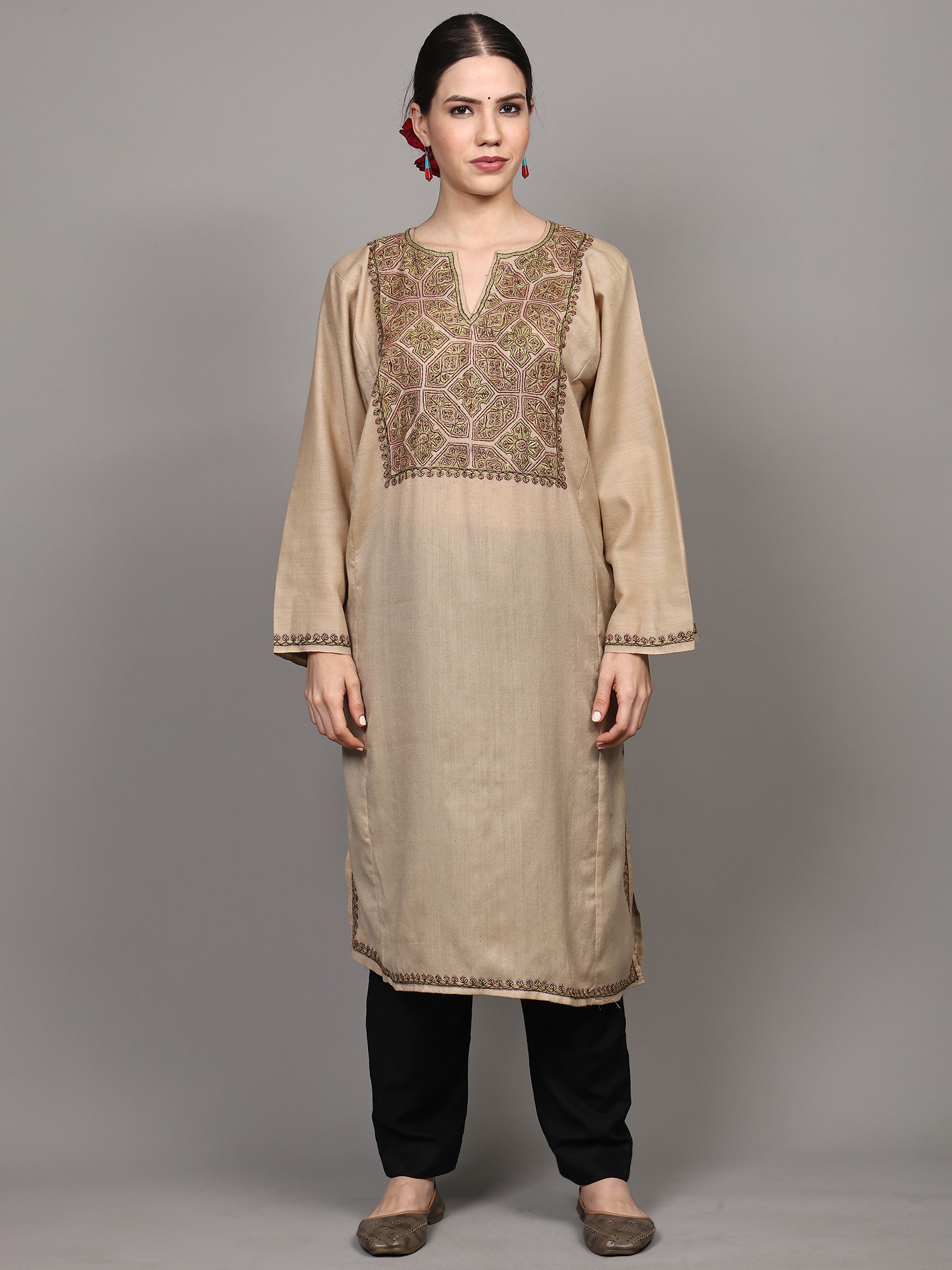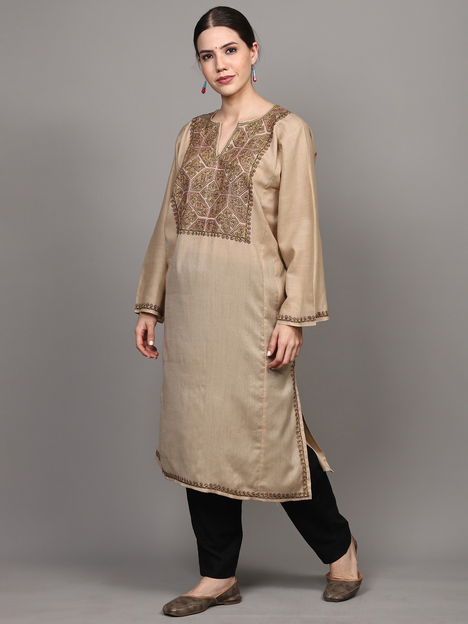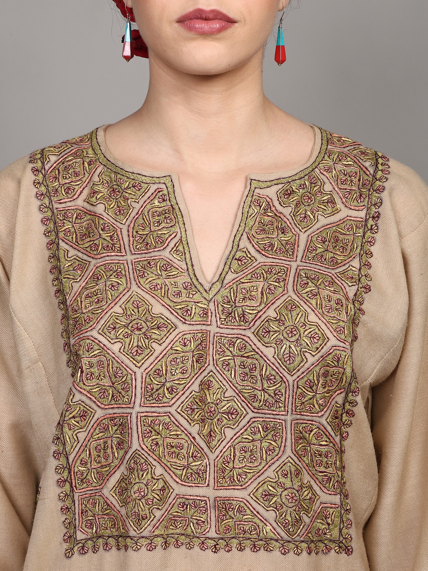 Wool Phiran with Intricate Tilla Embroidery from Kashmir